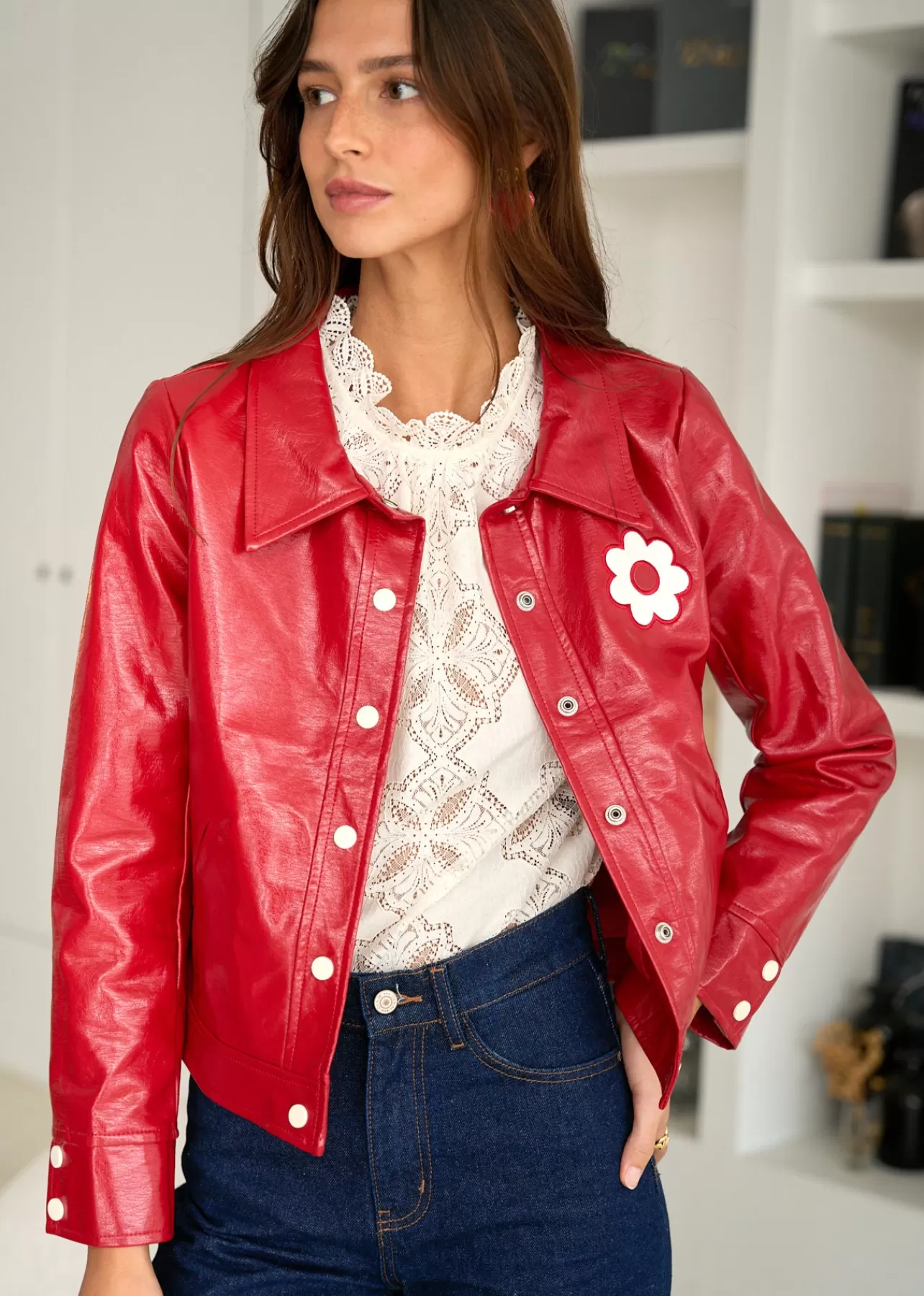 – Blouse brodée en coton – Manches longues – Col rond – Volants au col et aux manches – Tissu ajouré – Ouverture goutt…