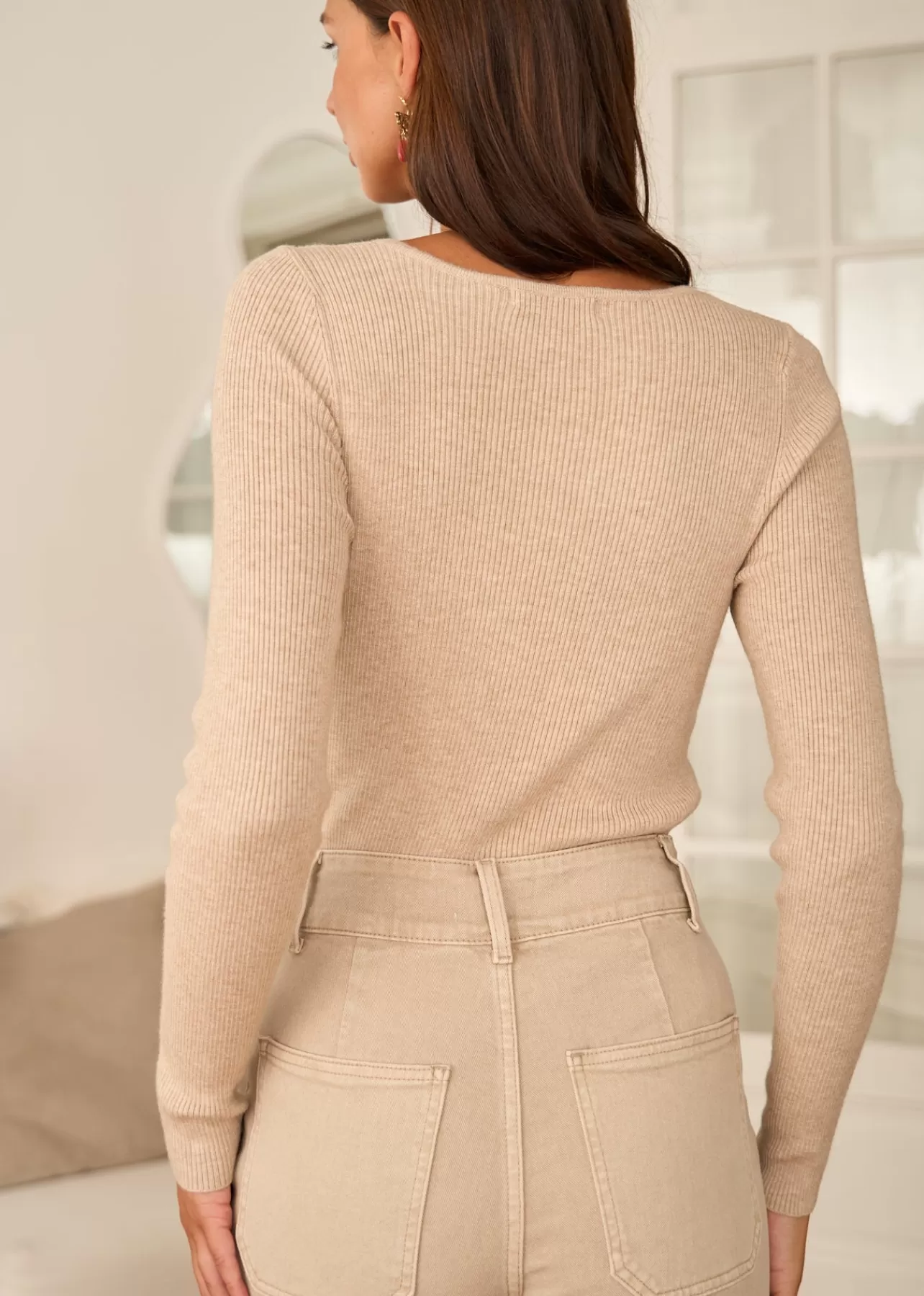 – Pull côtelé en viscose – Manches longues – Col arrondi – Patte de boutonnage à l’épaule – Boutons dorés – …
