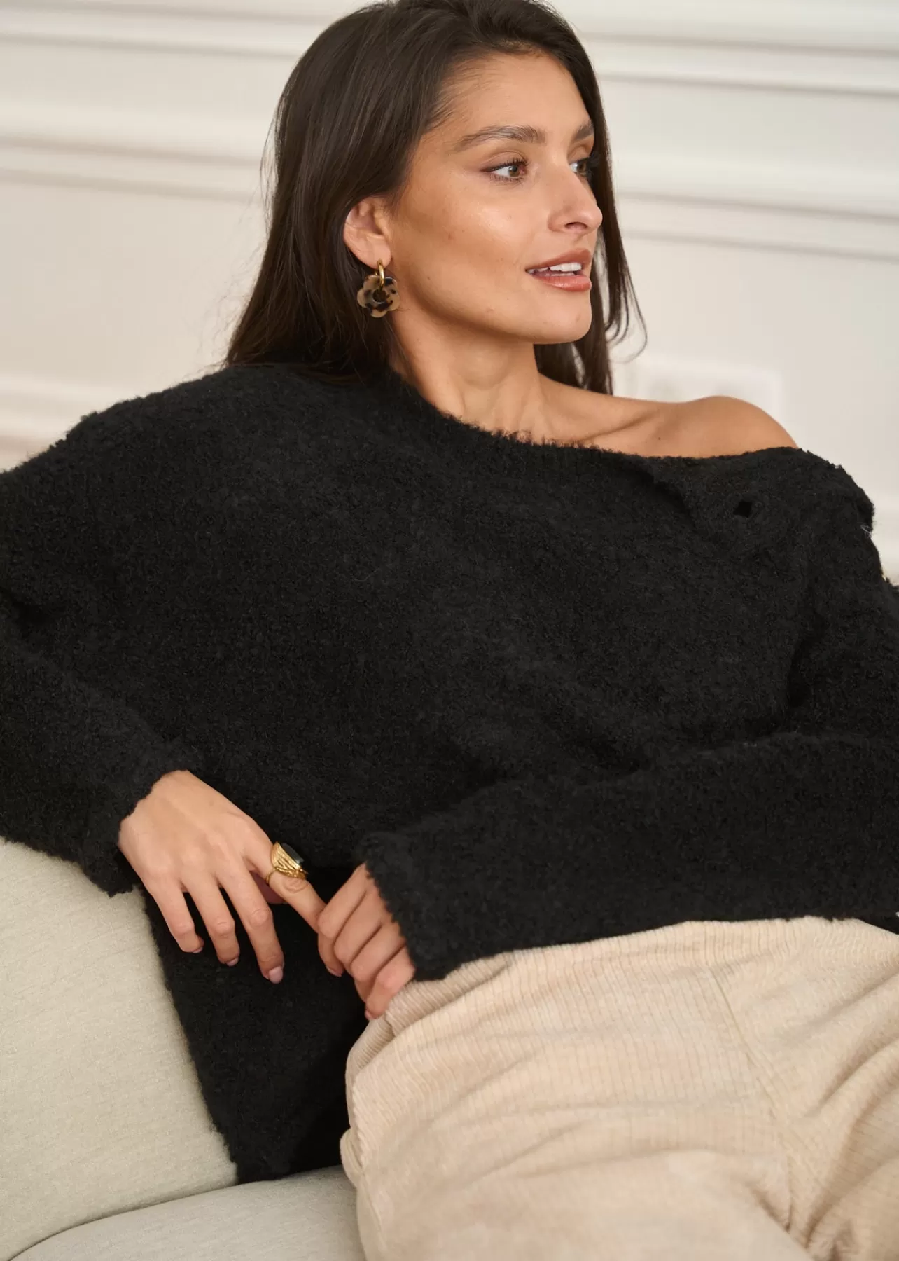 – Pull manches longues – Col rond – Patte de boutonnage à l’épaule – Boutons dorés – Longueur : 58 cm (T.U) – Larg…