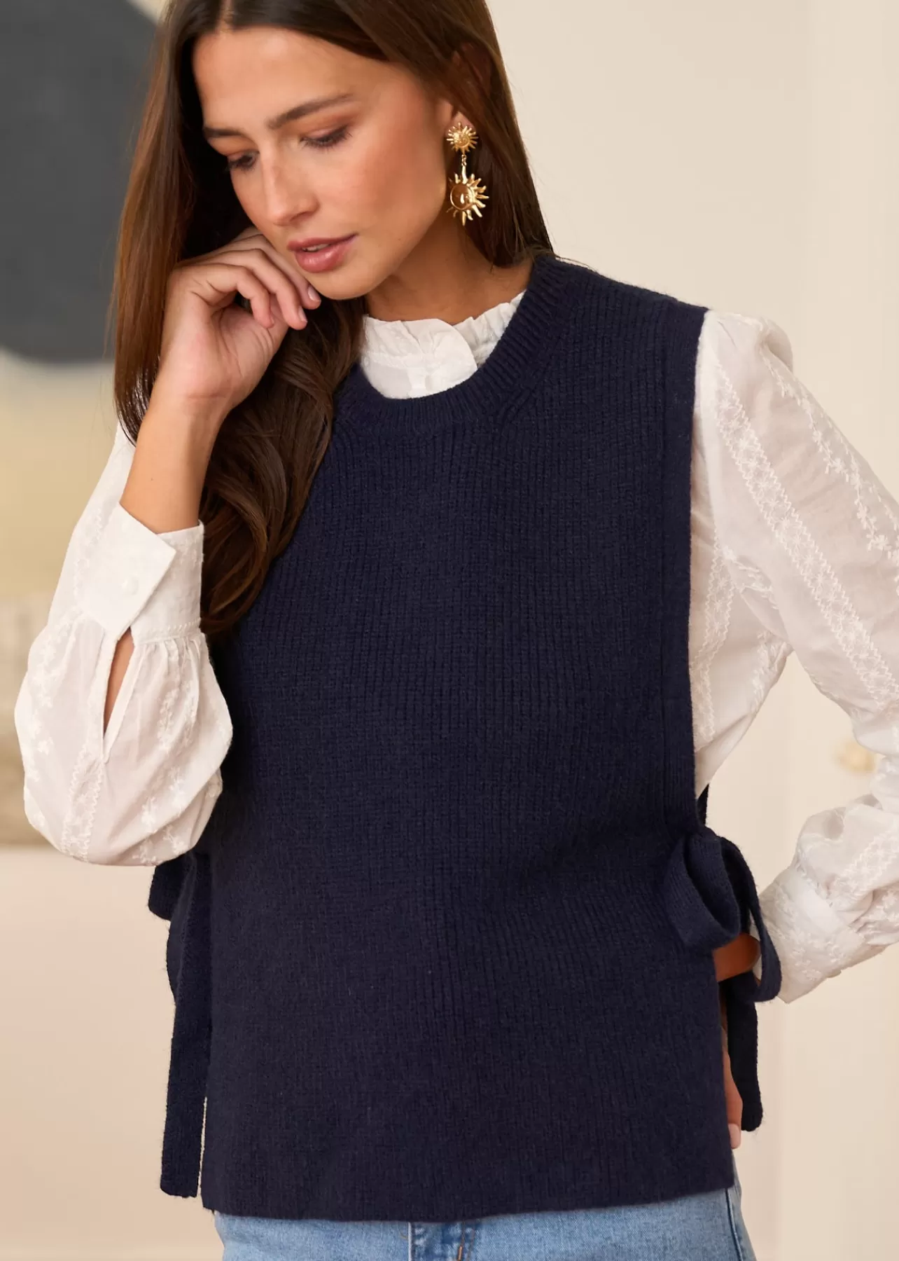 – Pull sans manches – Col rond – Fermeture par des noeuds aux côtés – Longueur asymétrique – Longueur : 60 cm (T.U…