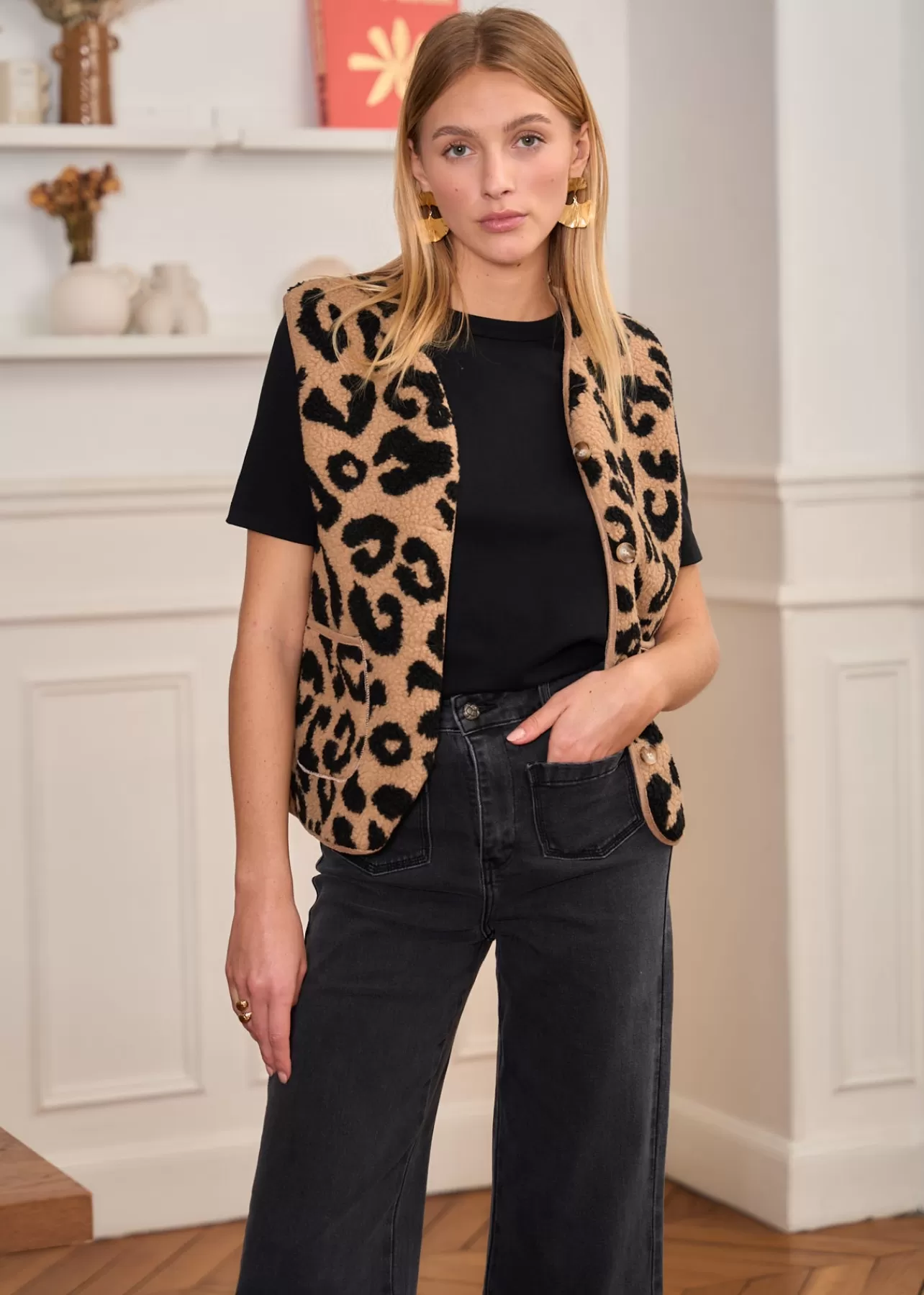 – Gilet effet mouton – Sans manches – Encolure en V – Patte de boutonnage a l’avant – Coupe droite – 2 poches au devan…