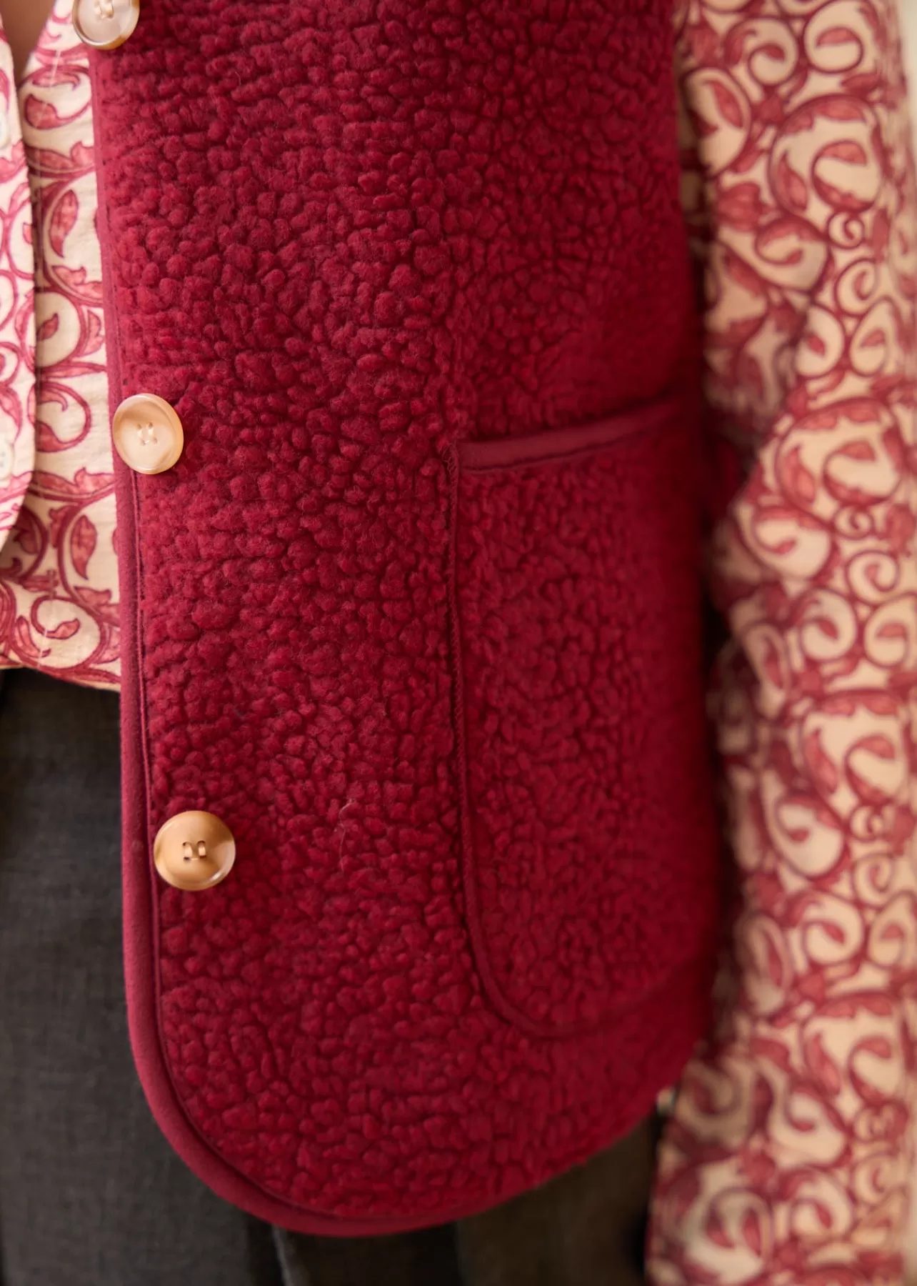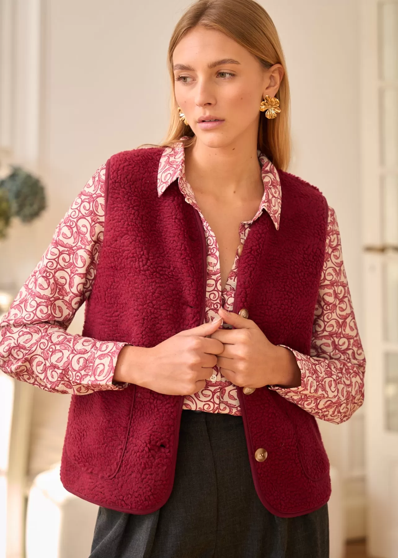 – Gilet effet mouton – Sans manches – Encolure en V – Patte de boutonnage a l’avant – Coupe droite – 2 poches au devan…
