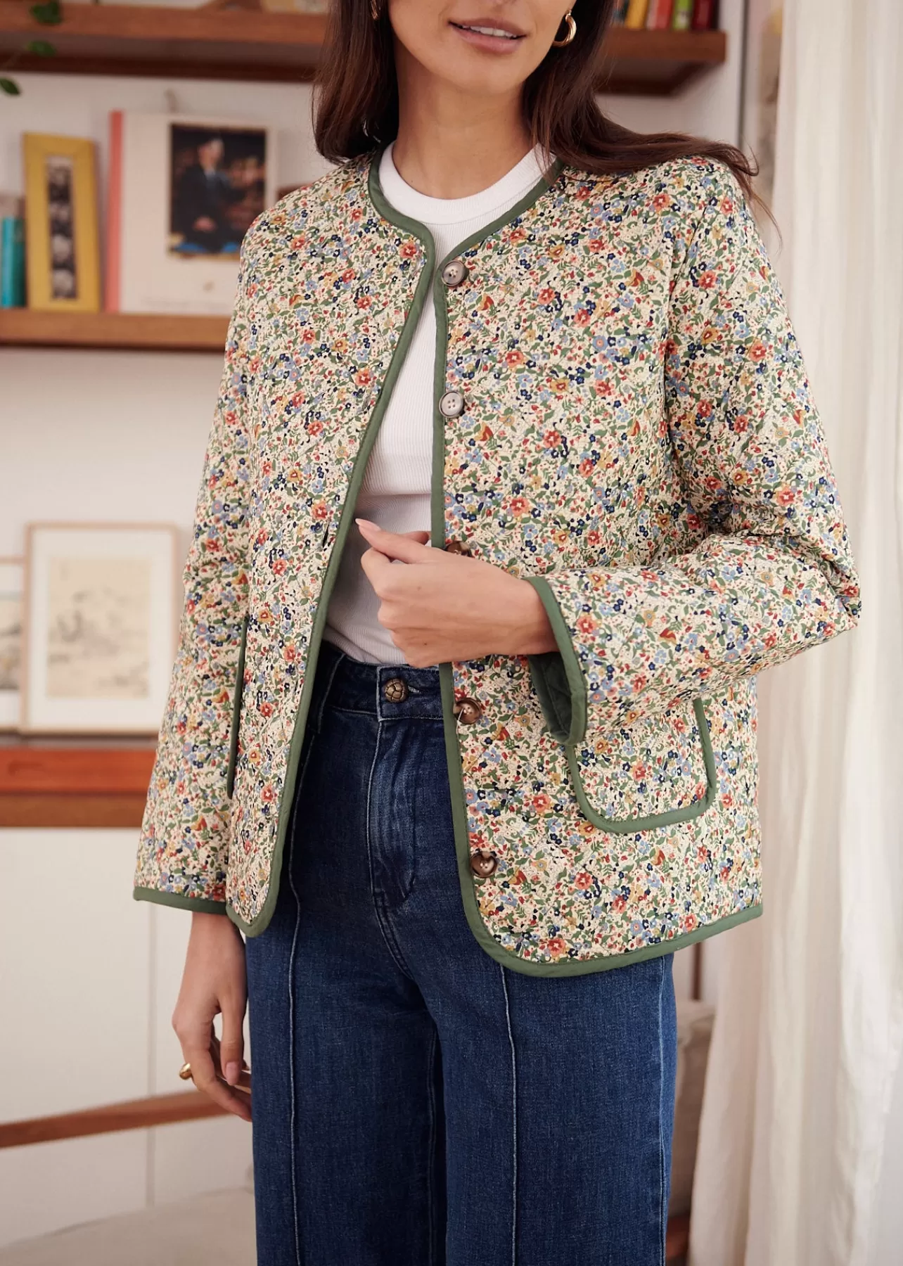 – Veste matelassée imprimée- Manches longues- Col rond- Patte de boutonnage à l’avant- 2 poches plaque…