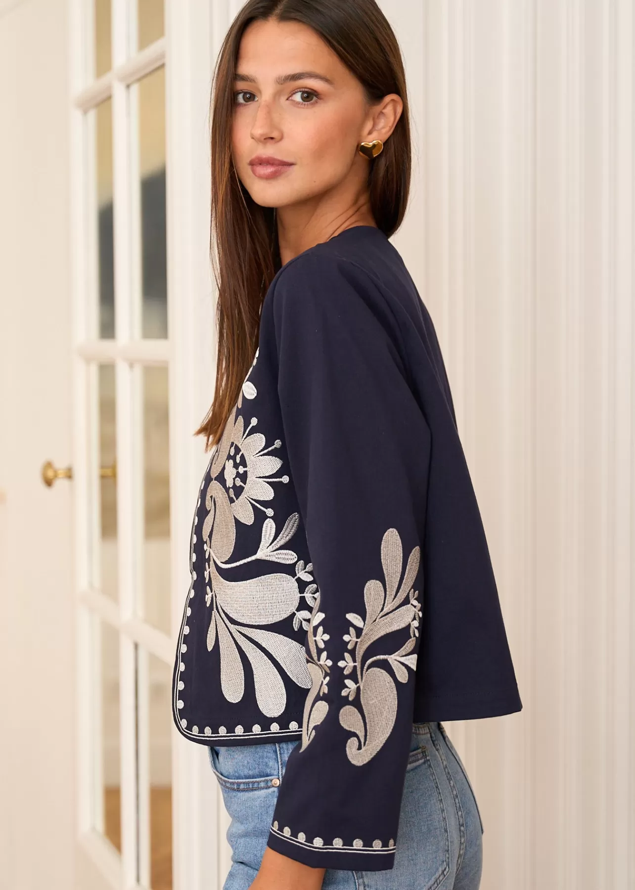 – Veste brodée en coton – Manches longues – Col rond – Longueur : 46 cm (S) – Largeur : 50 cm Youlia mesure 1m76 et po…