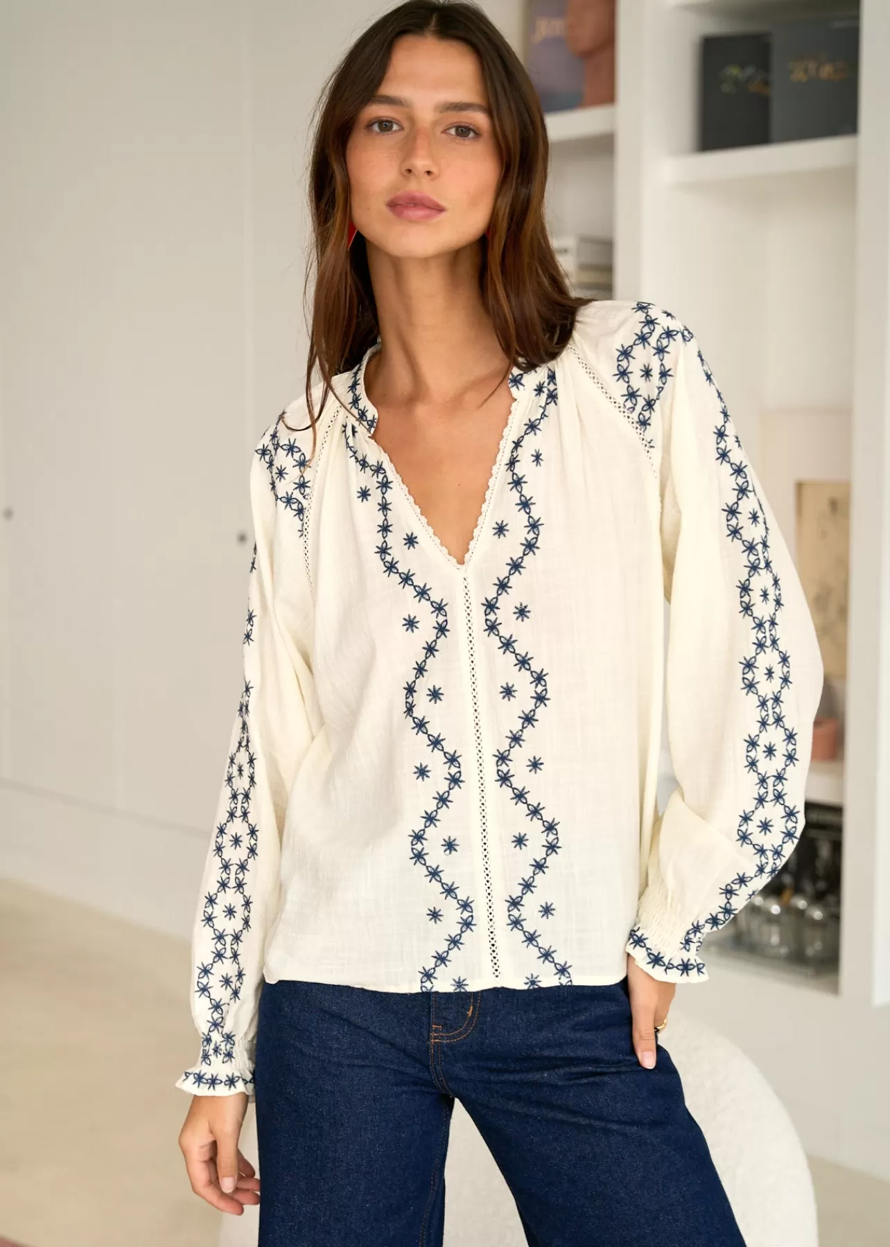 – Blouse brodée en coton
