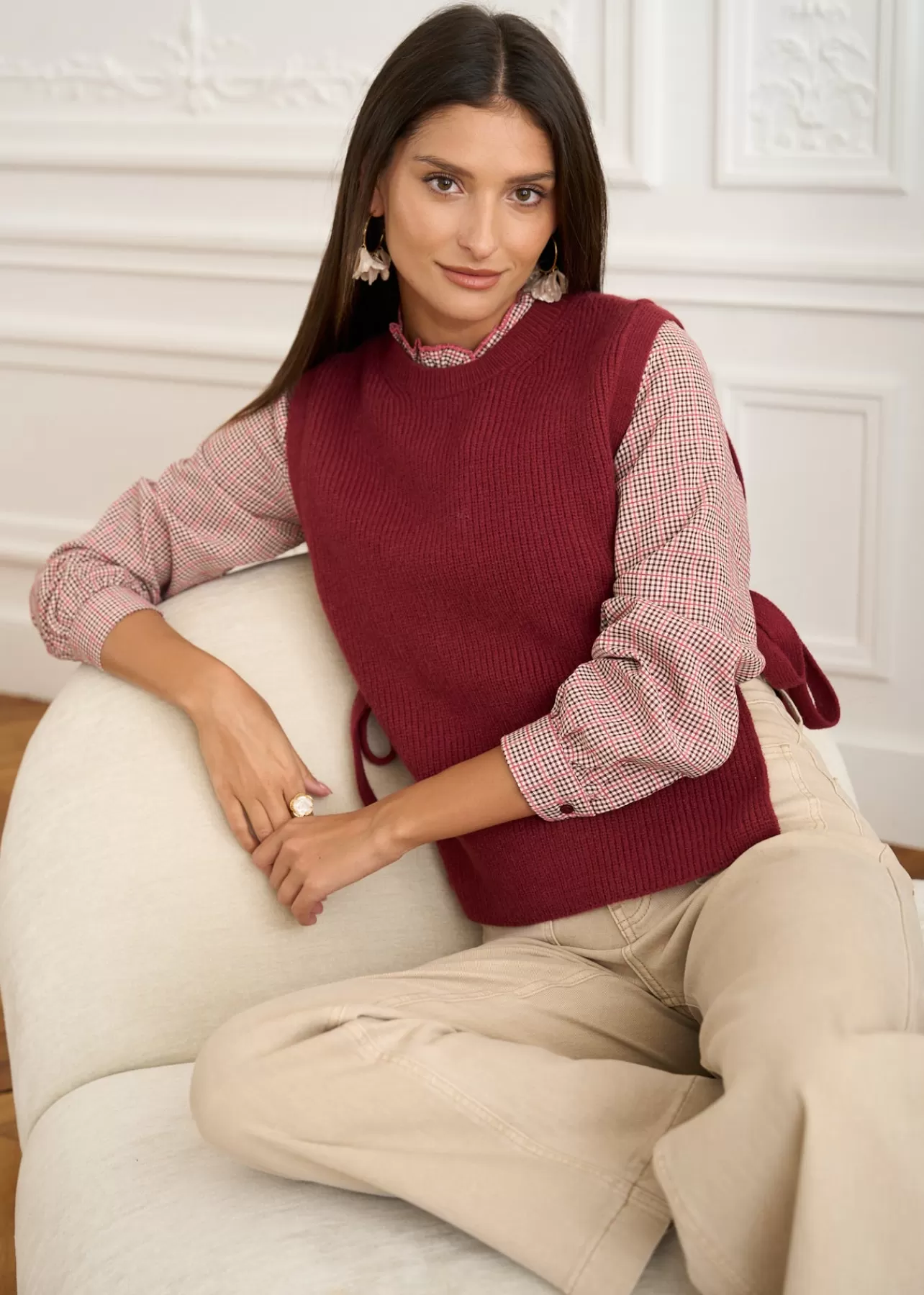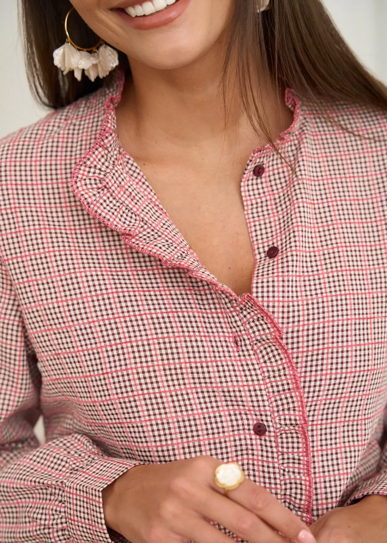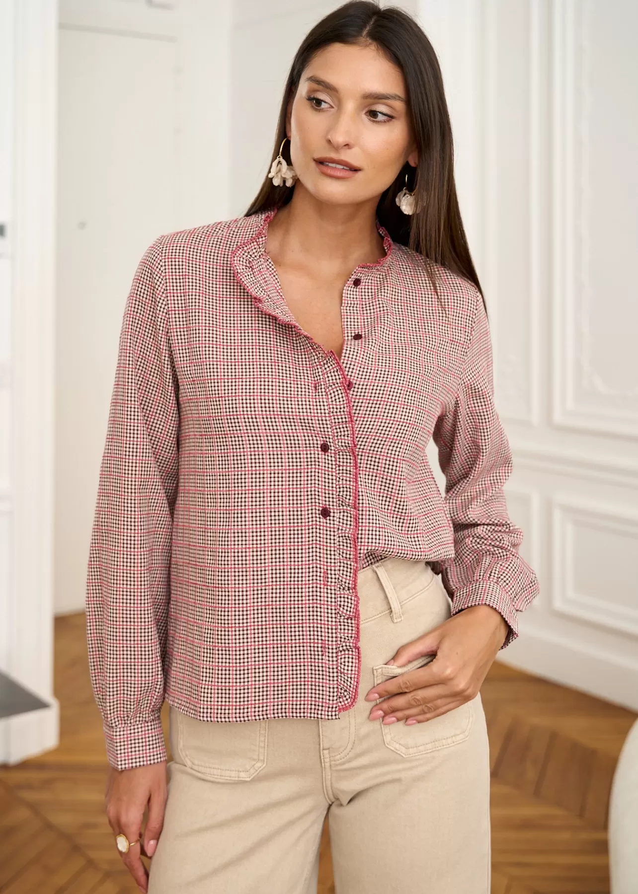– Blouse tissu vichy – Manches longues – Col rond volanté – Patte de boutonnage au devant – Longueur : 56 cm (S) – Lar…