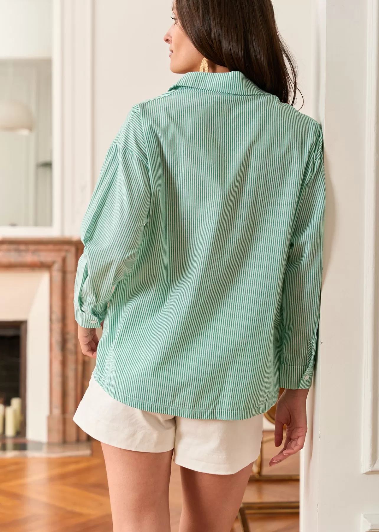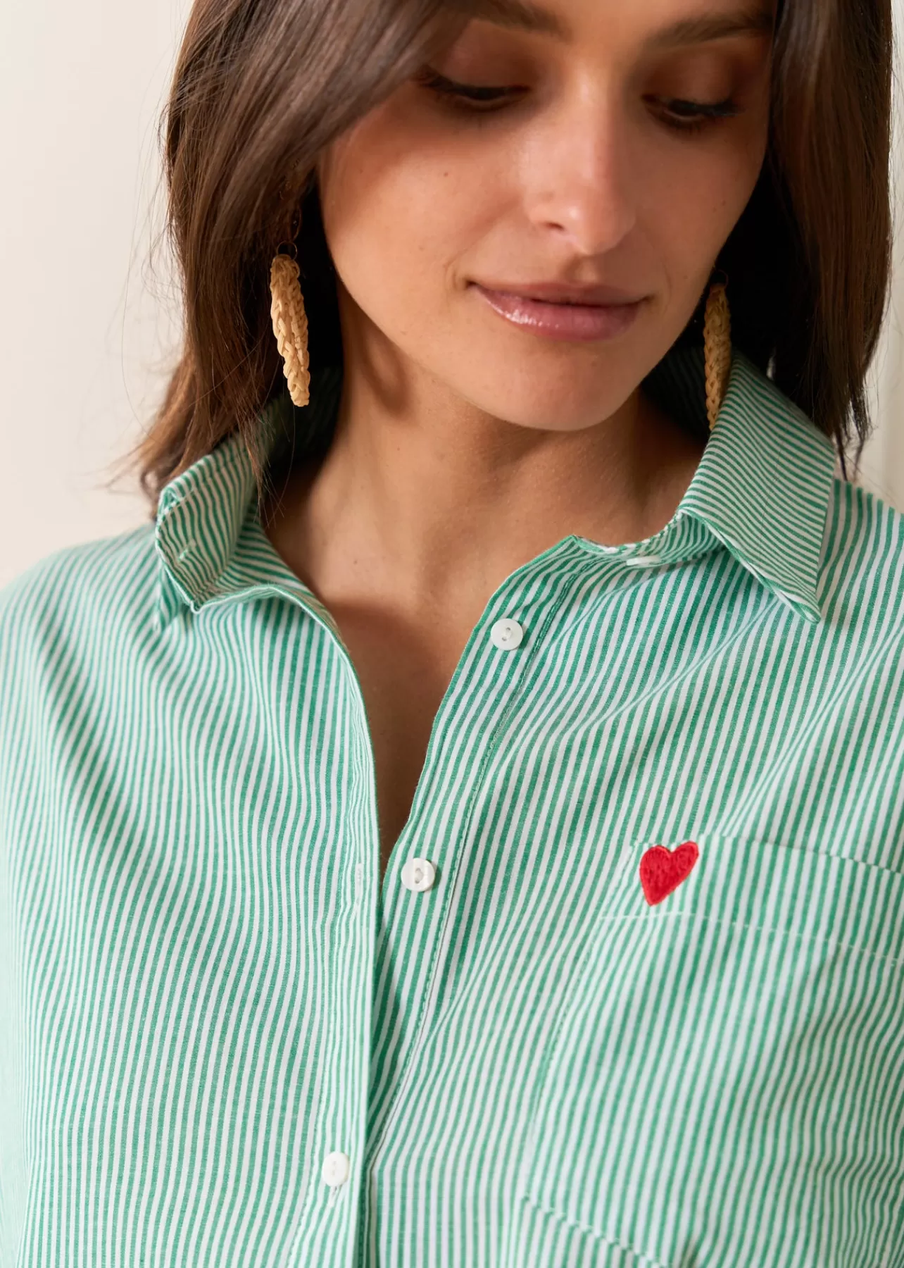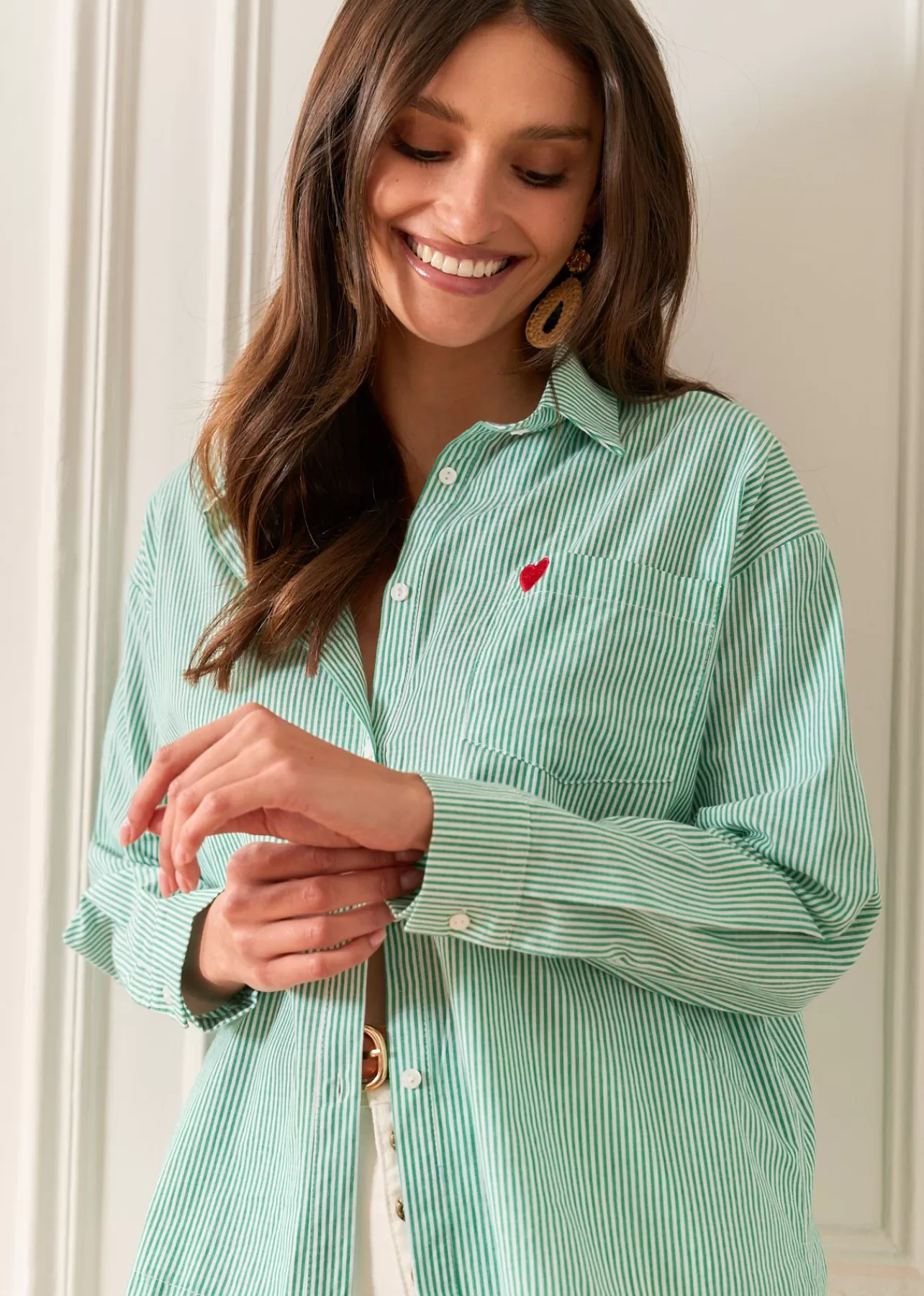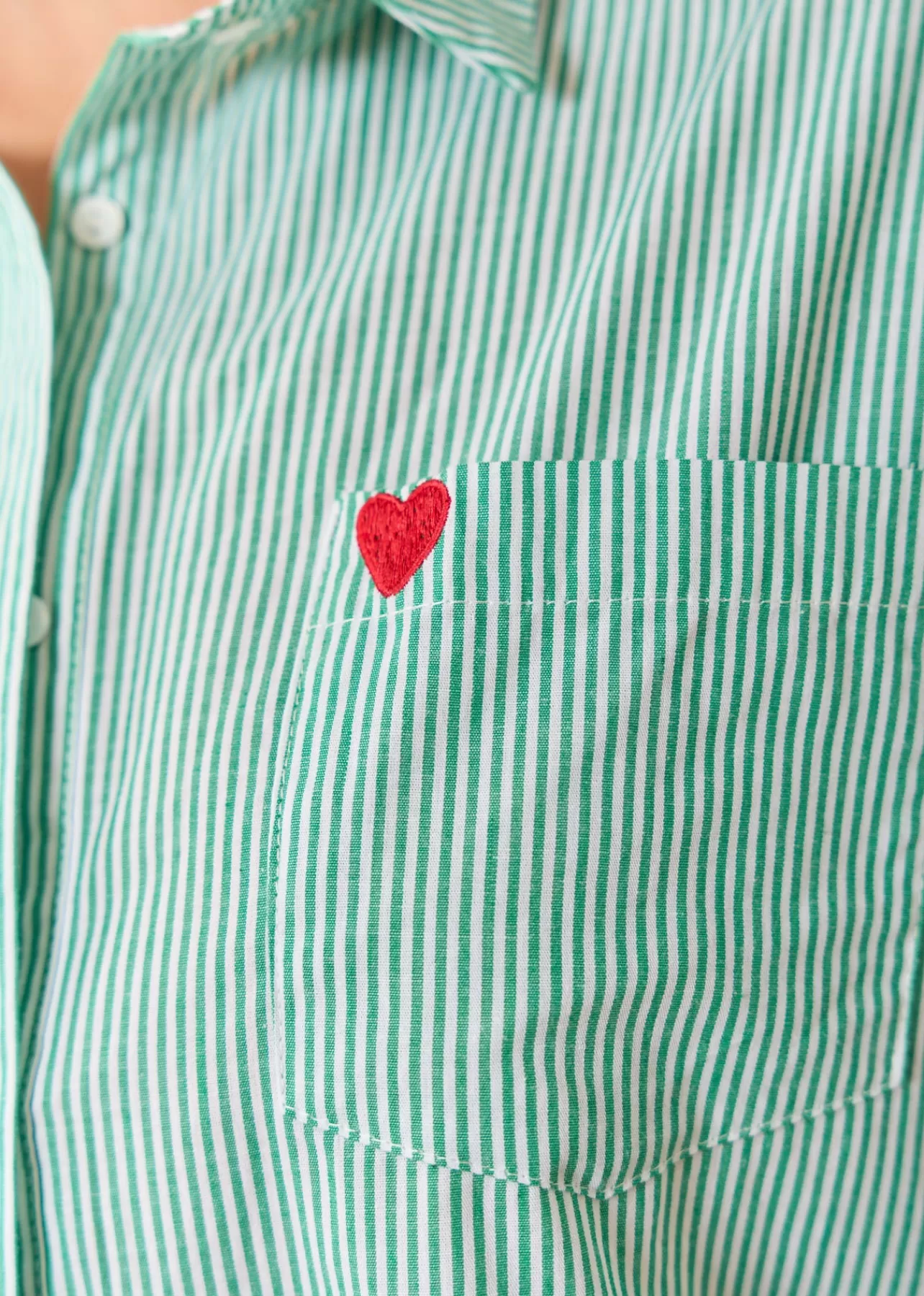 – Chemise à rayures- Manches longues- Poche plaquée à l’avant brodée avec un coeur- Patte de boutonnag…