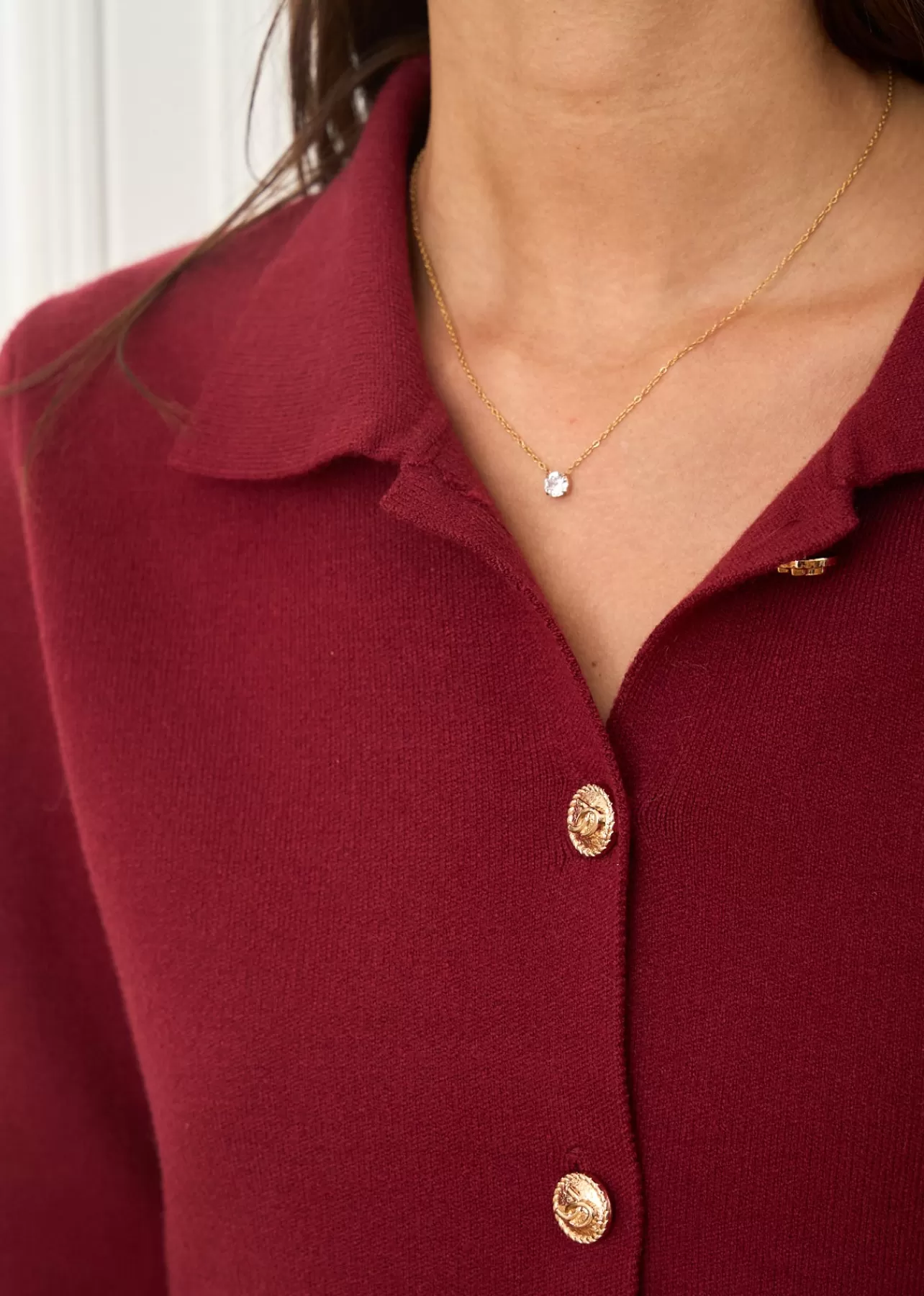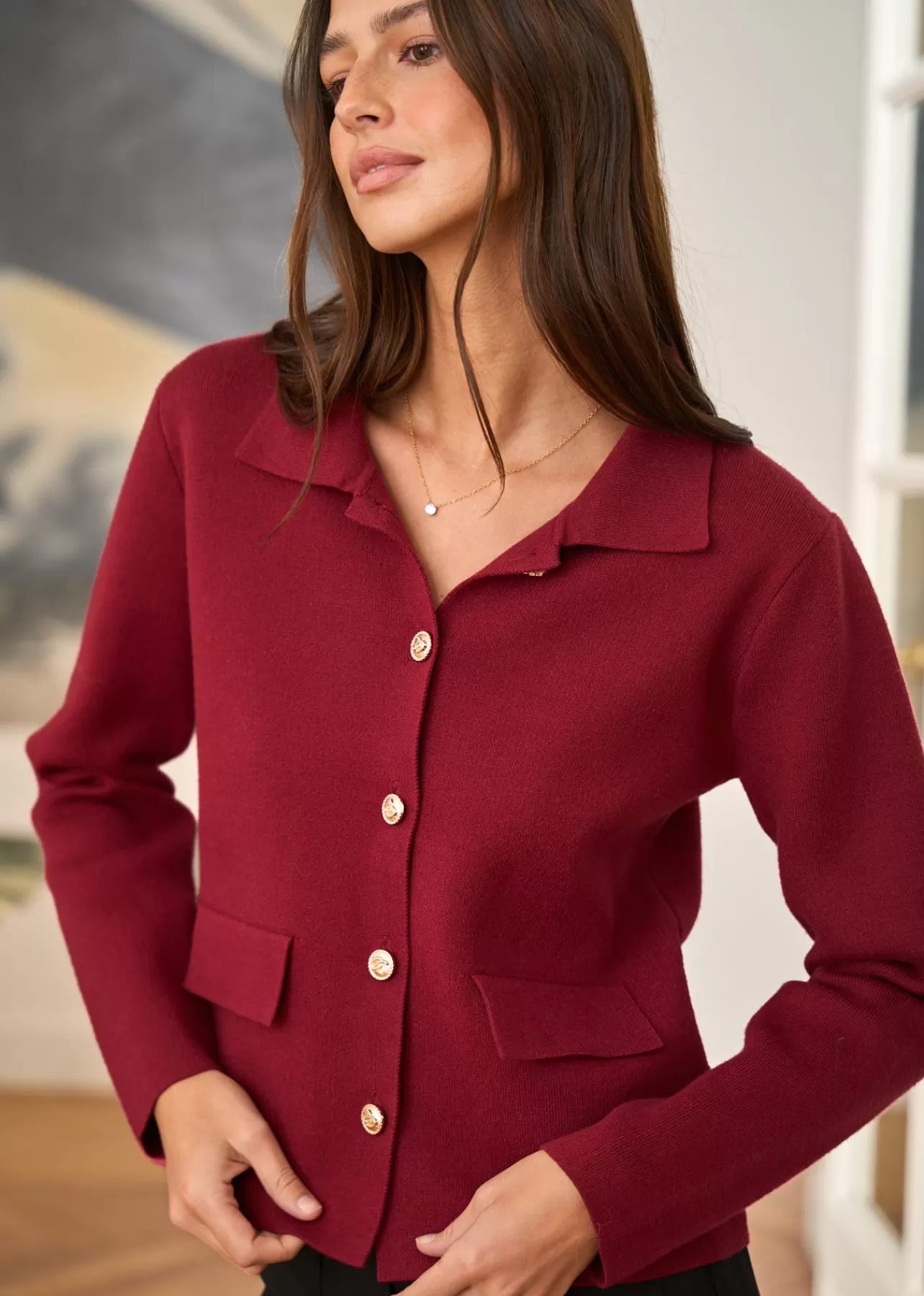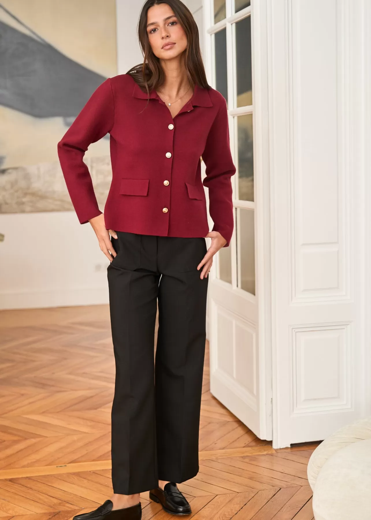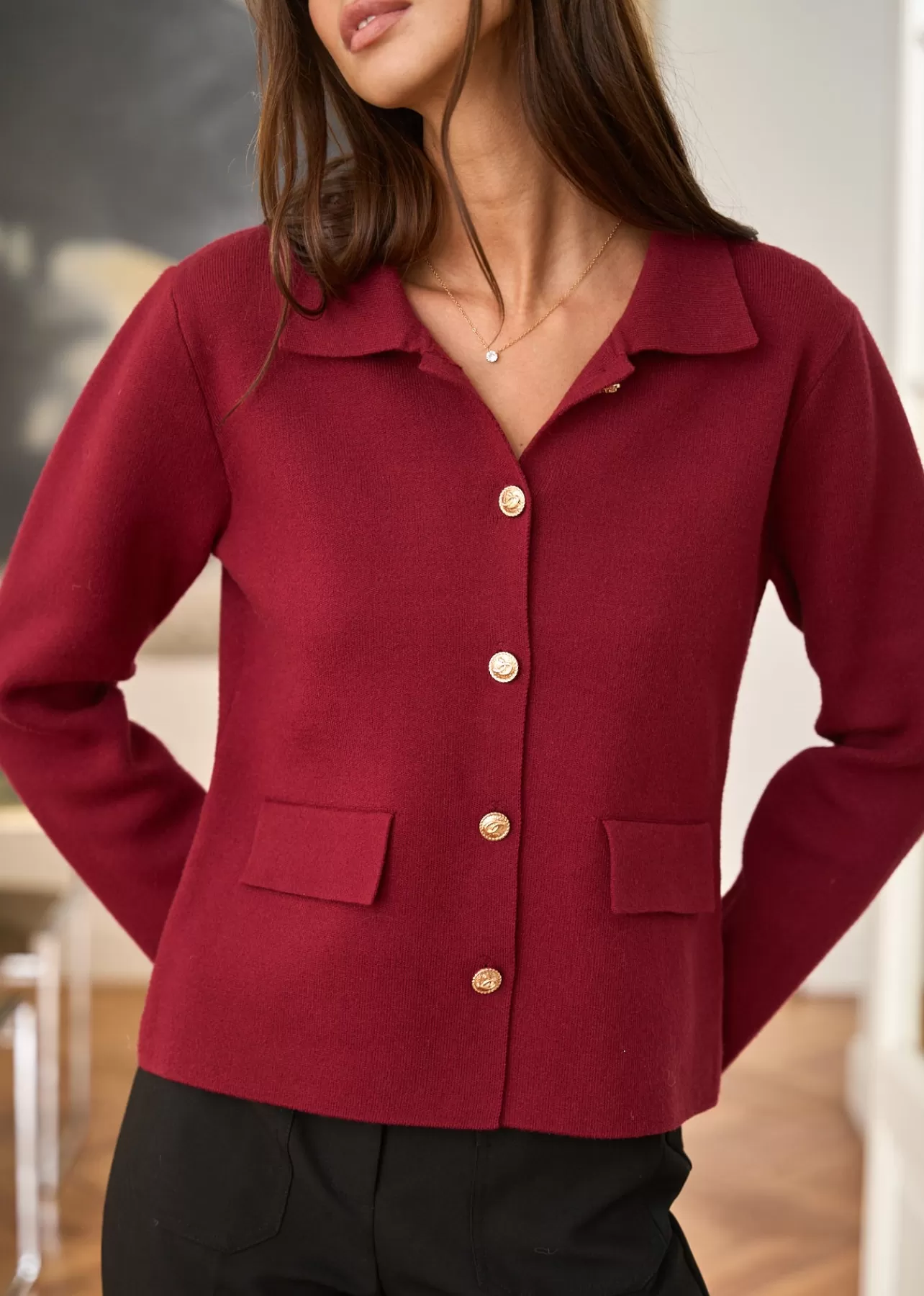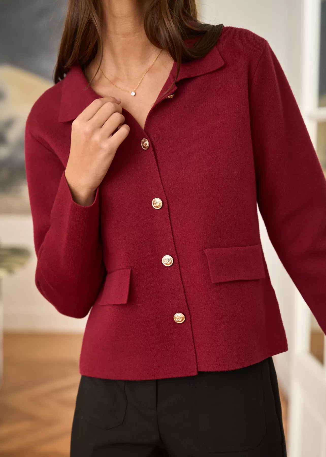 – Gilet en viscose – Manches longues – Col classique – Patte de boutonnage au devant – Boutons dorés – 2 fausses poches…