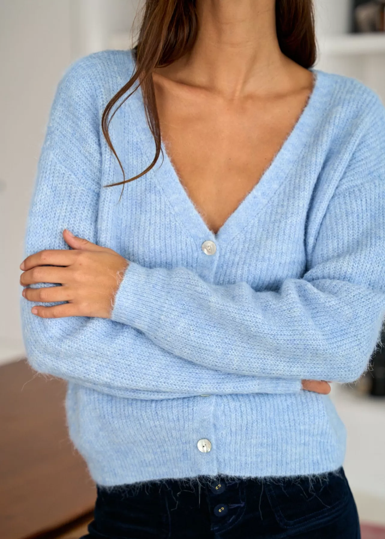 – Gilet manches longues – Encolure en V – Patte de boutonnage au devant – Boutons nacrés – Longueur : 55 cm (T.U) Youl…