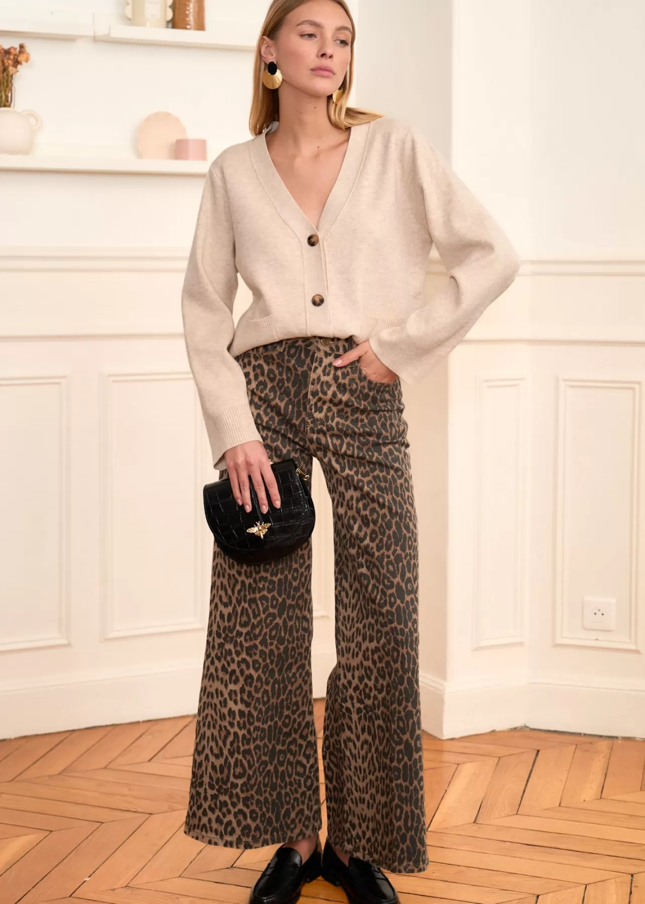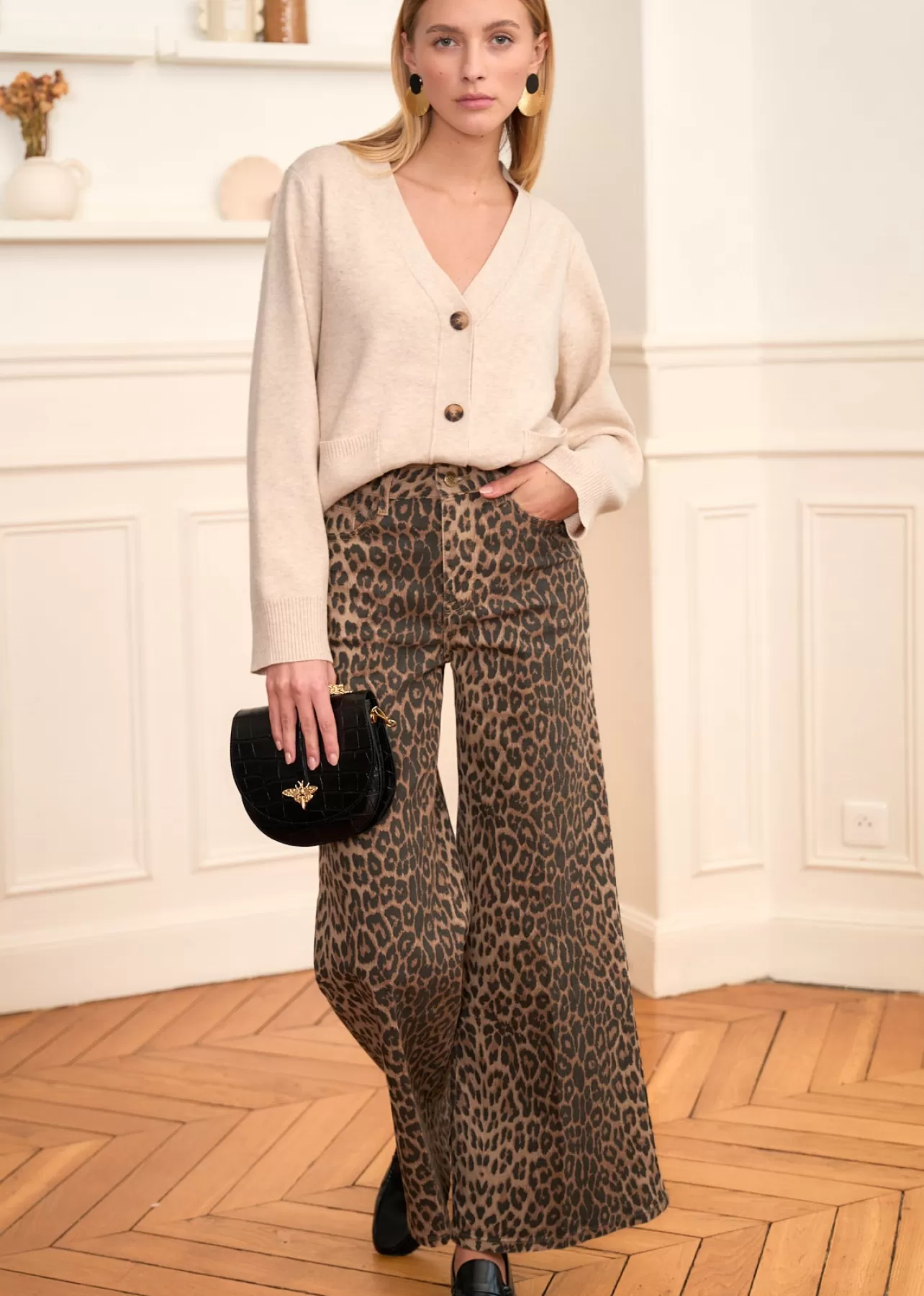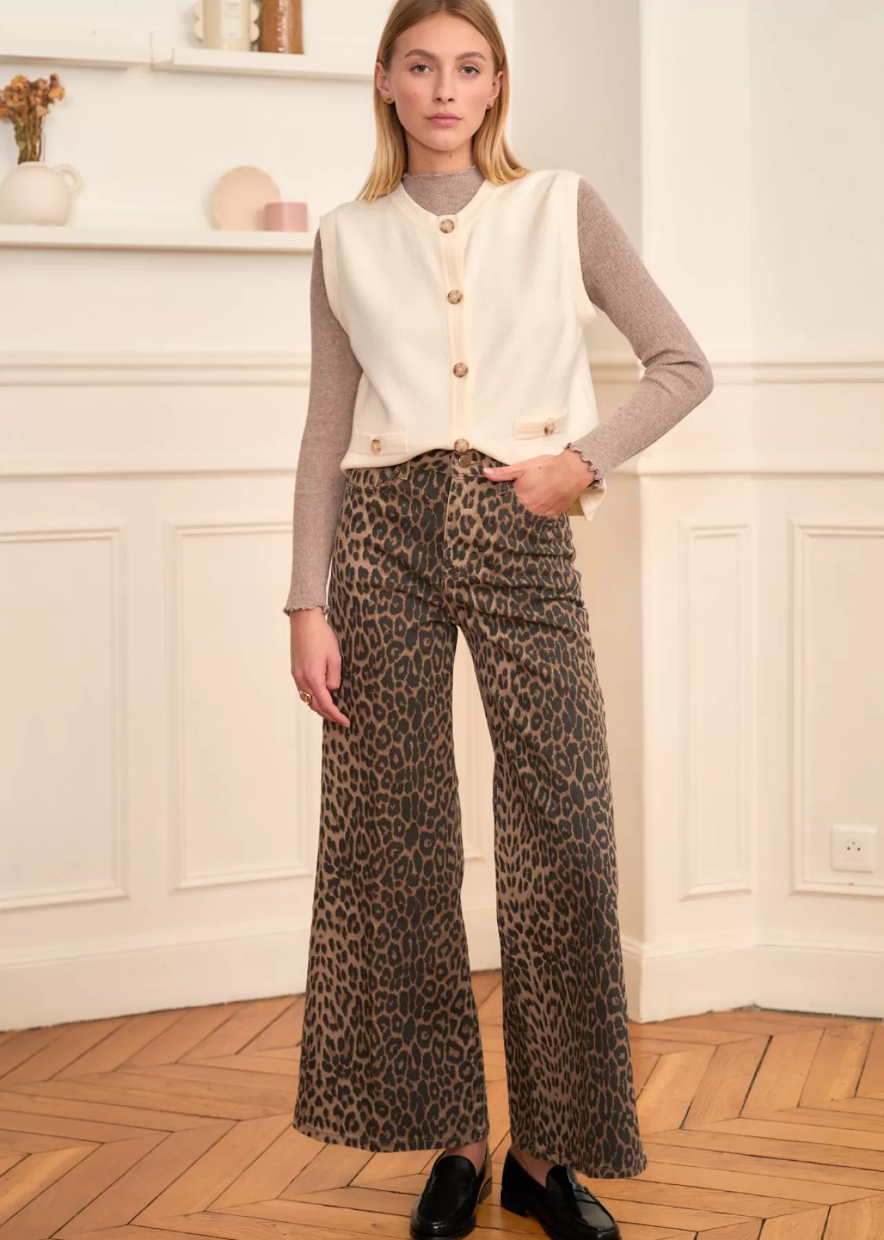 – Jean imprimé coupe flare – Taille haute – Fermeture par un zip et un bouton – 2 poches plaquées à l’avant u0026…