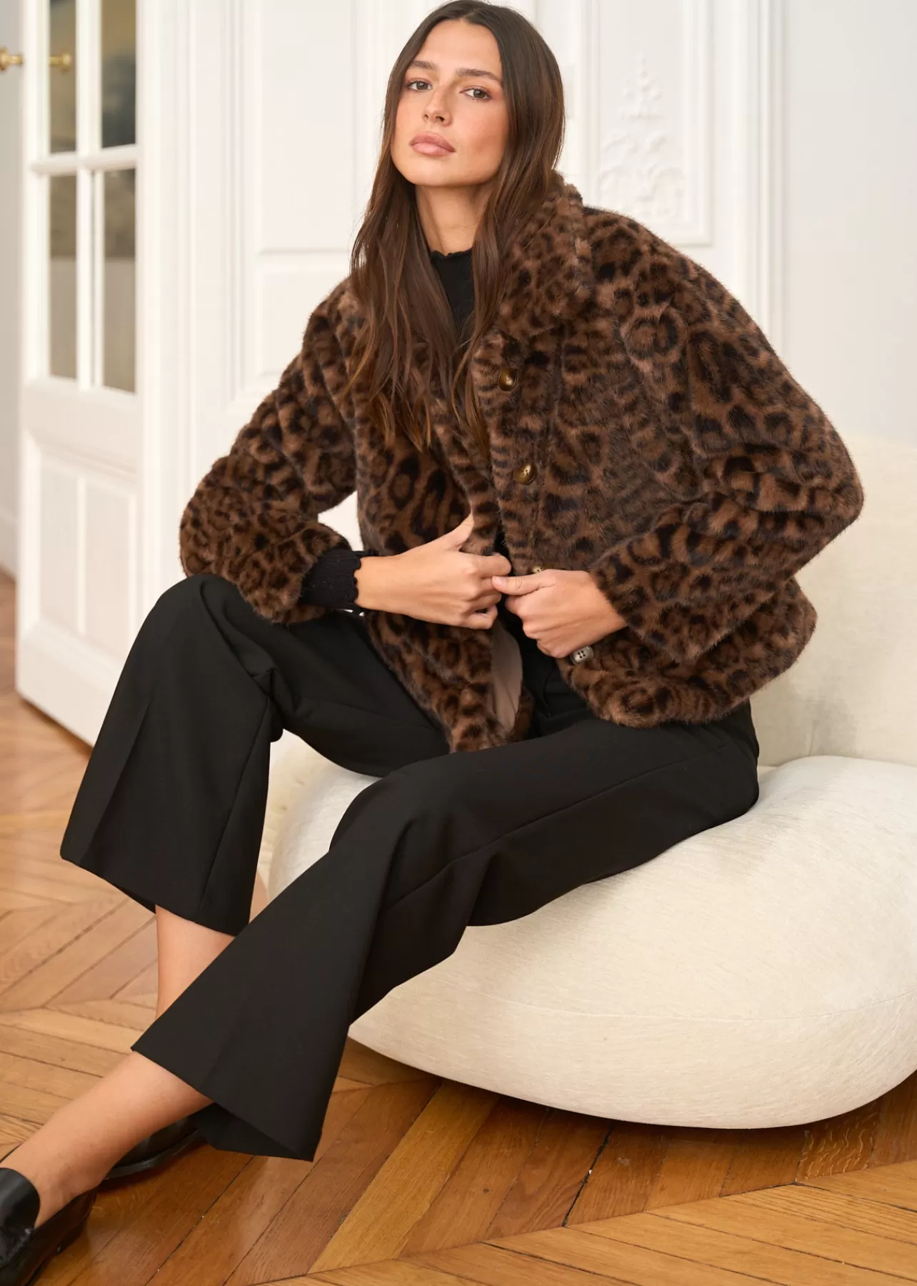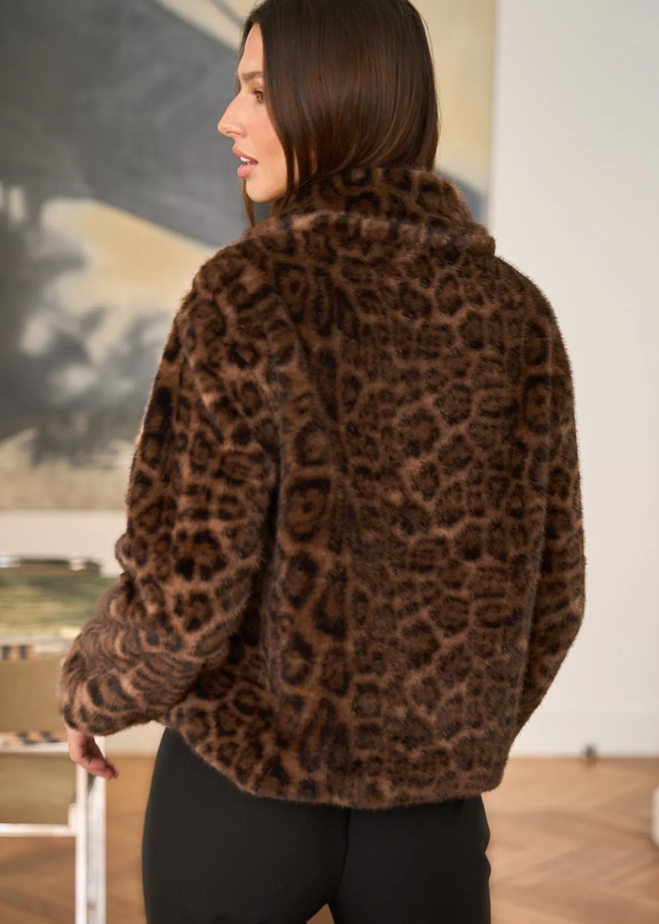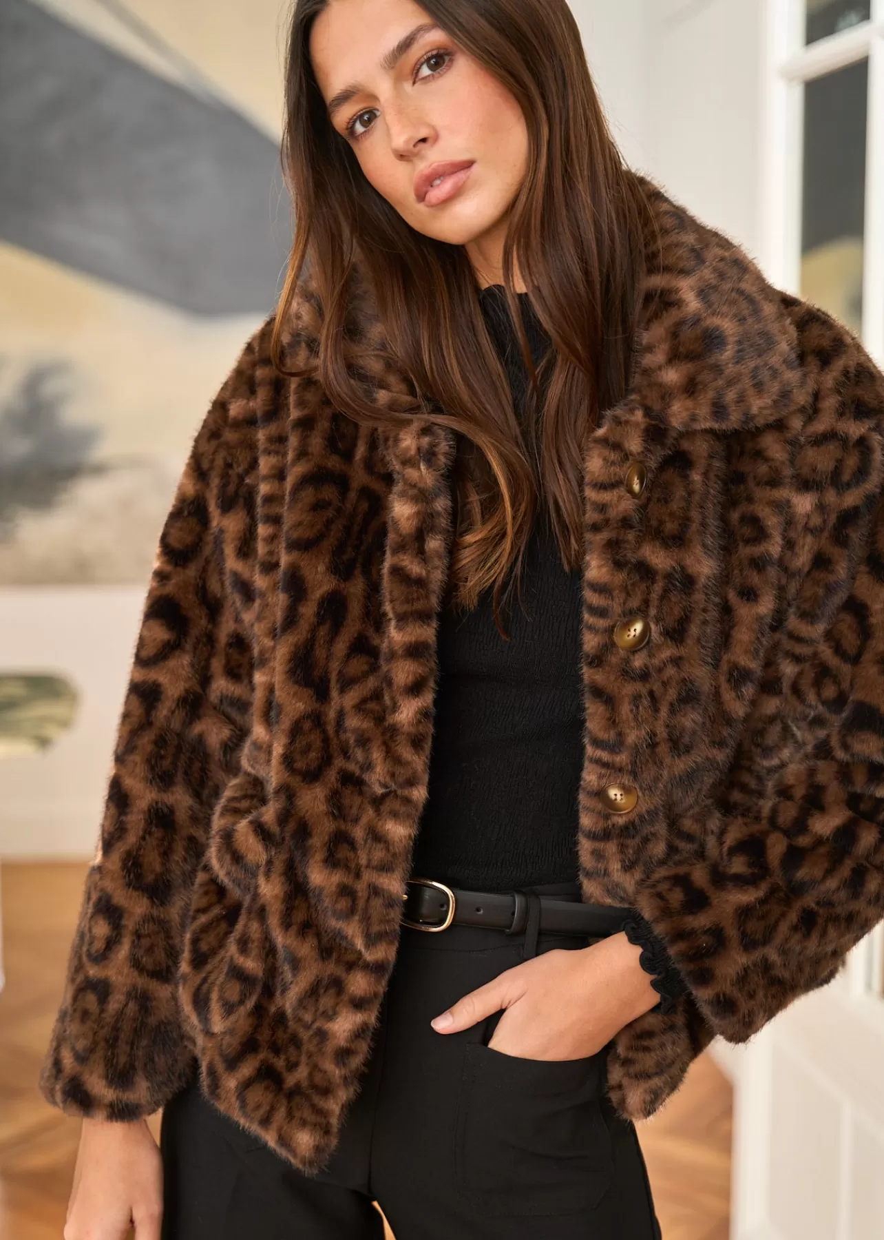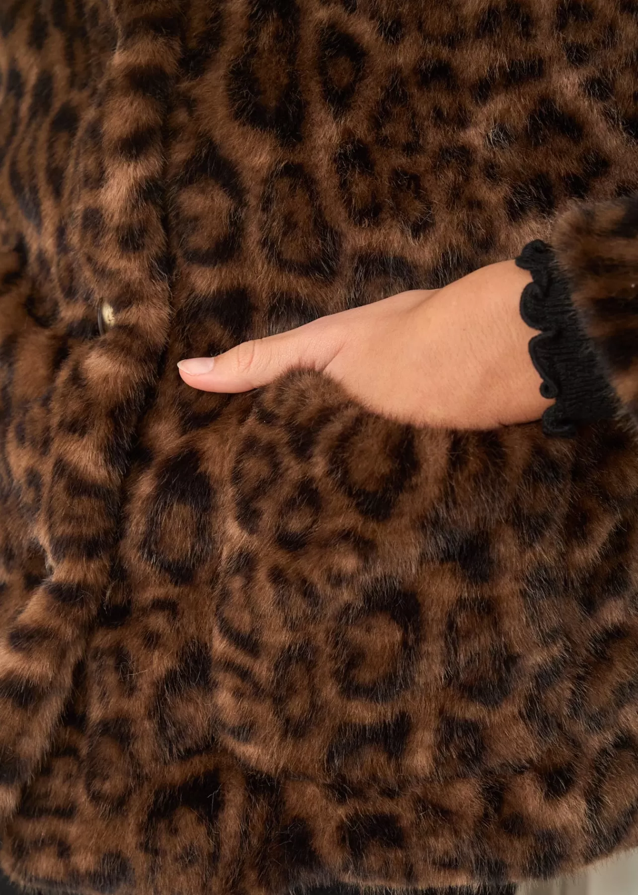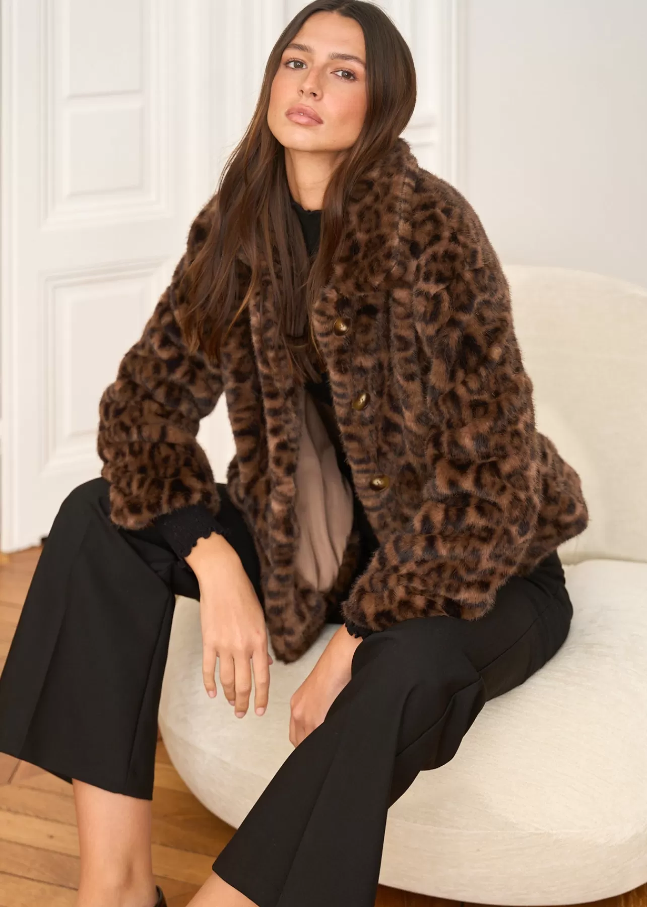 – Manteau en fausse fourrure – Motif Léopard – Manches longues – Col classique – Patte de boutonnage au devant – 2 poch…