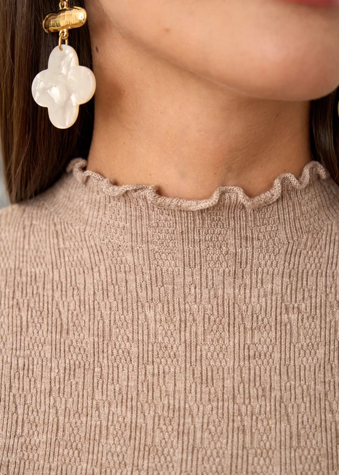 – Pull en viscose – Manches longues – Col montant – Volants aux bords du col est des manches – Longueur : 54 cm (S/M) Ma…
