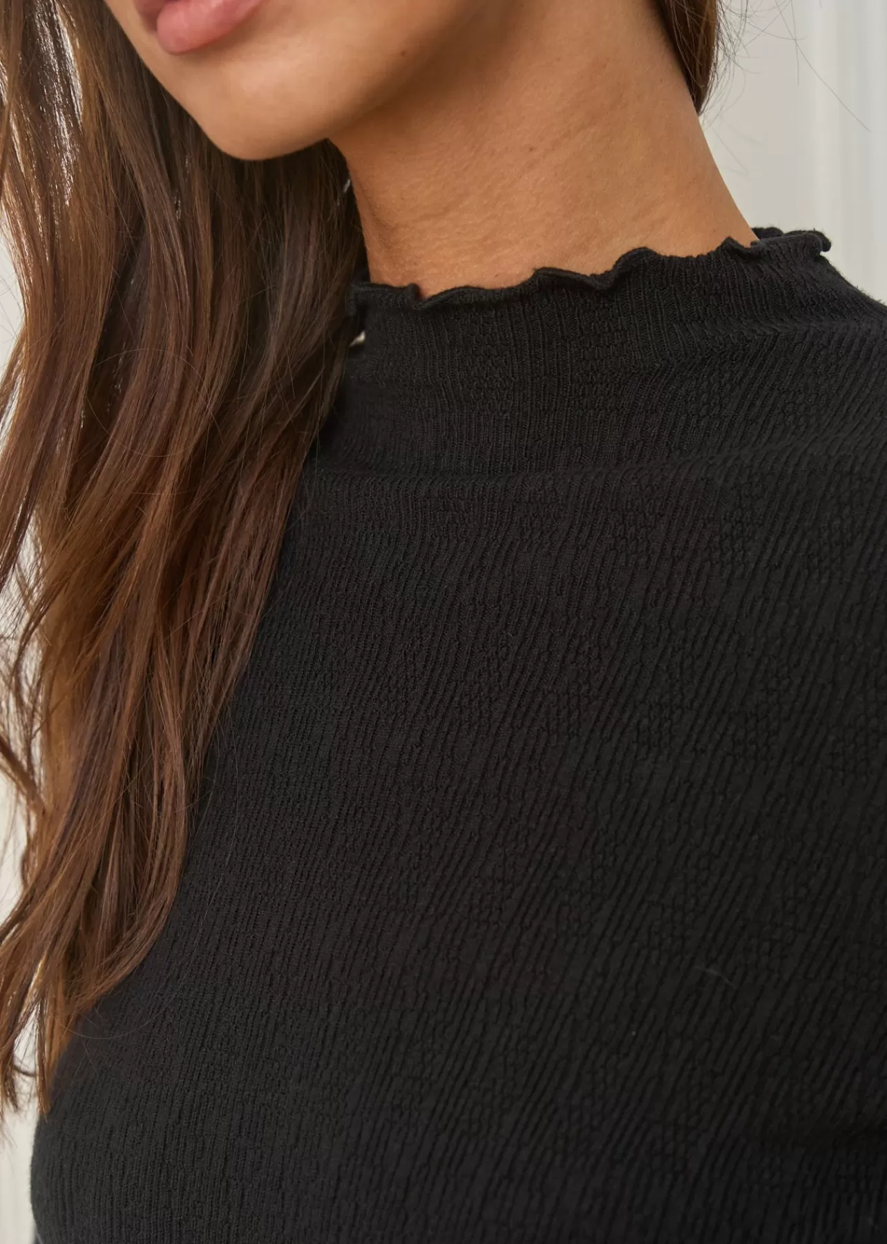 – Pull en viscose – Manches longues – Col montant – Volants aux bords du col et des manches – Longueur : 54 cm (S/M) You…