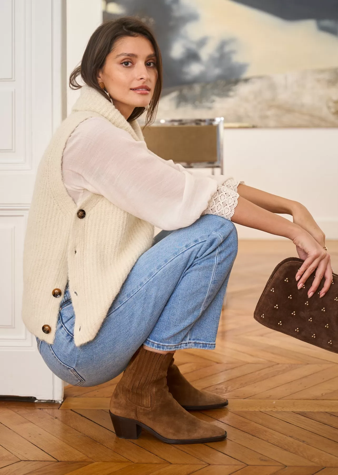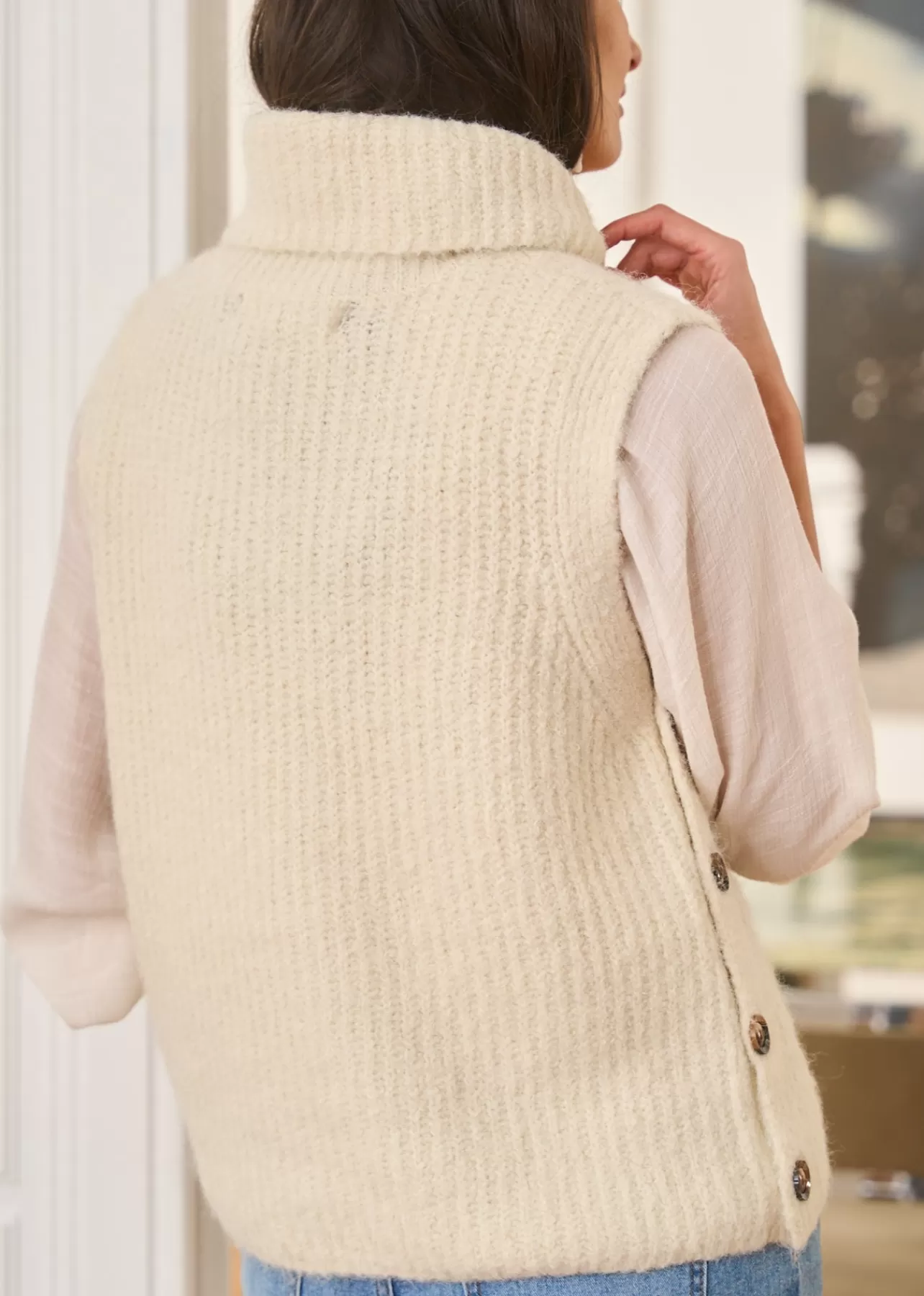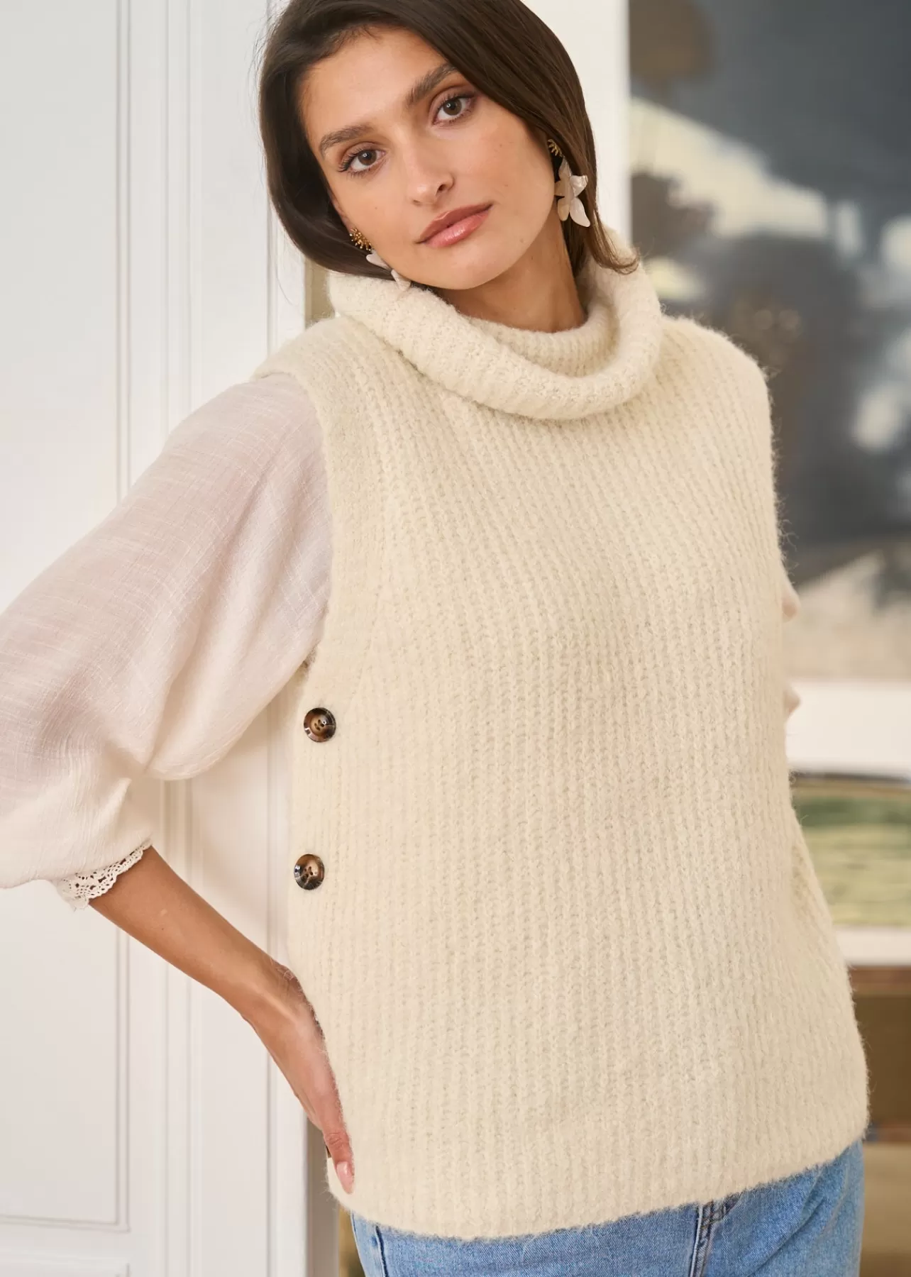 – Pull sans manches – Col roulé – Fermeture par des boutons aux côtés – Longueur : 56 cm (T.U) – Largeur : 49 cm Mari…