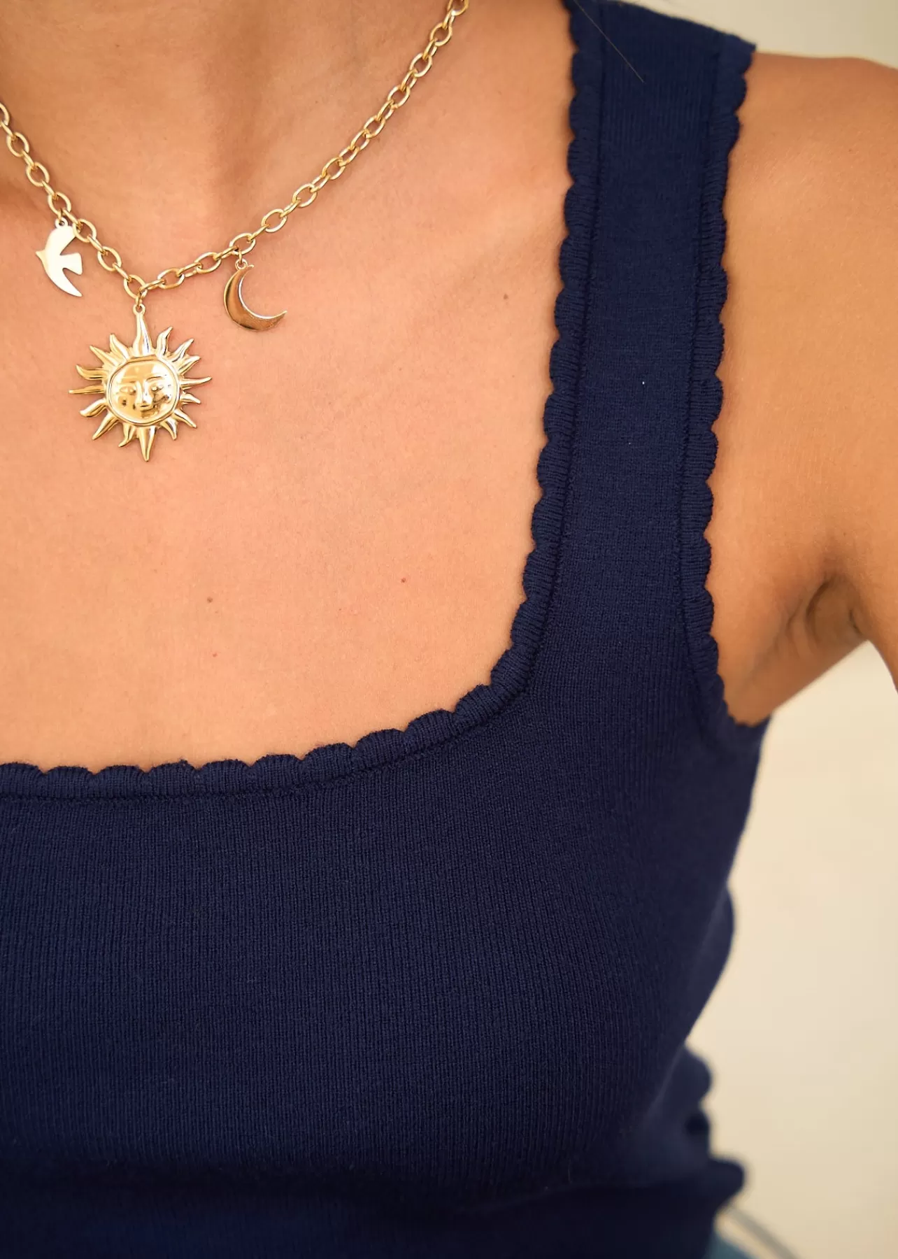 – Débardeur en maille en viscose – Sans manches – Col carré – Bords festonnés – Longueur : 54 cm (T.U) Youlia mesu…