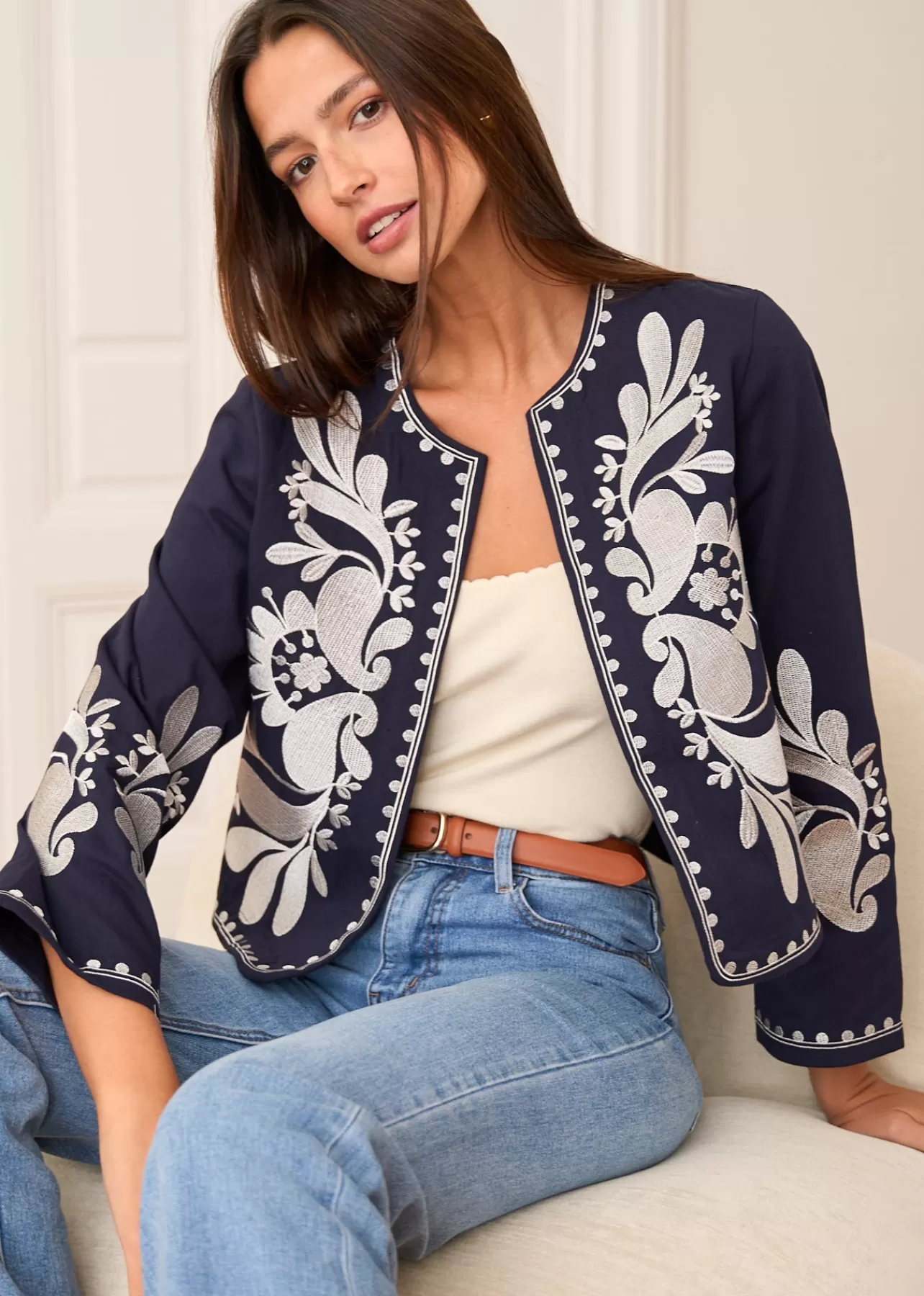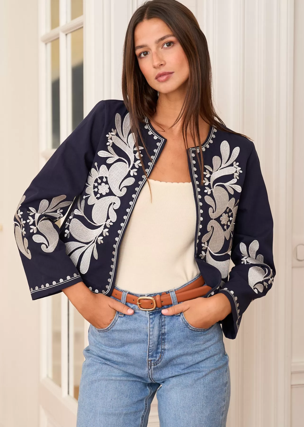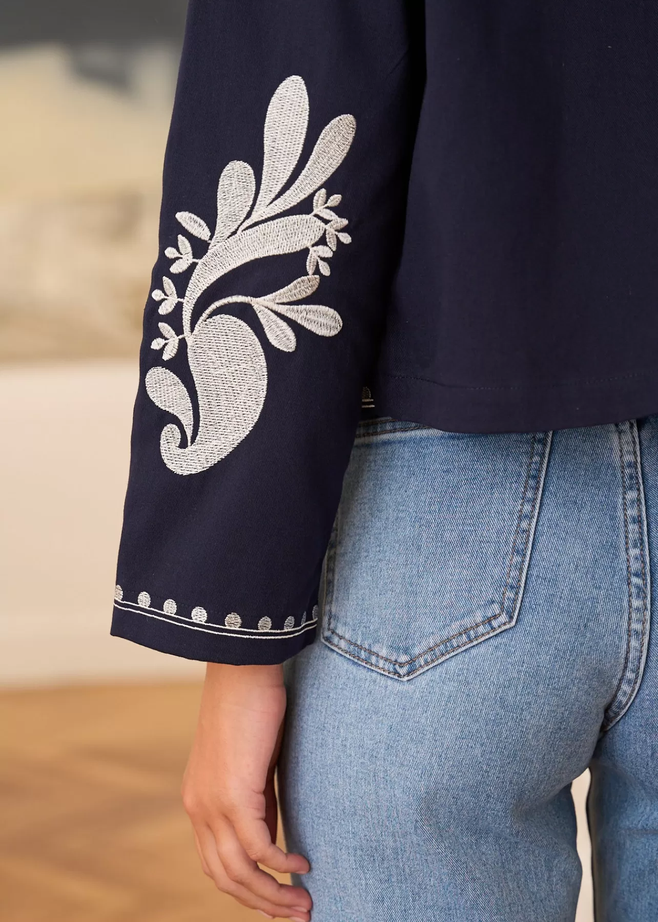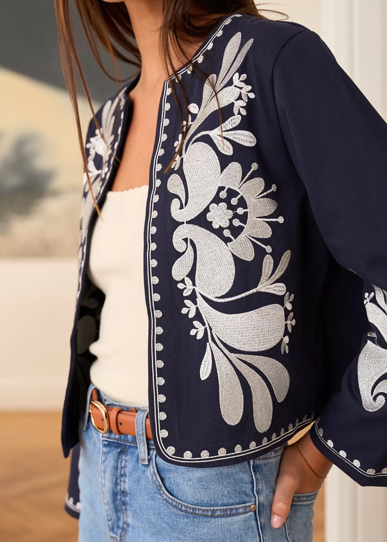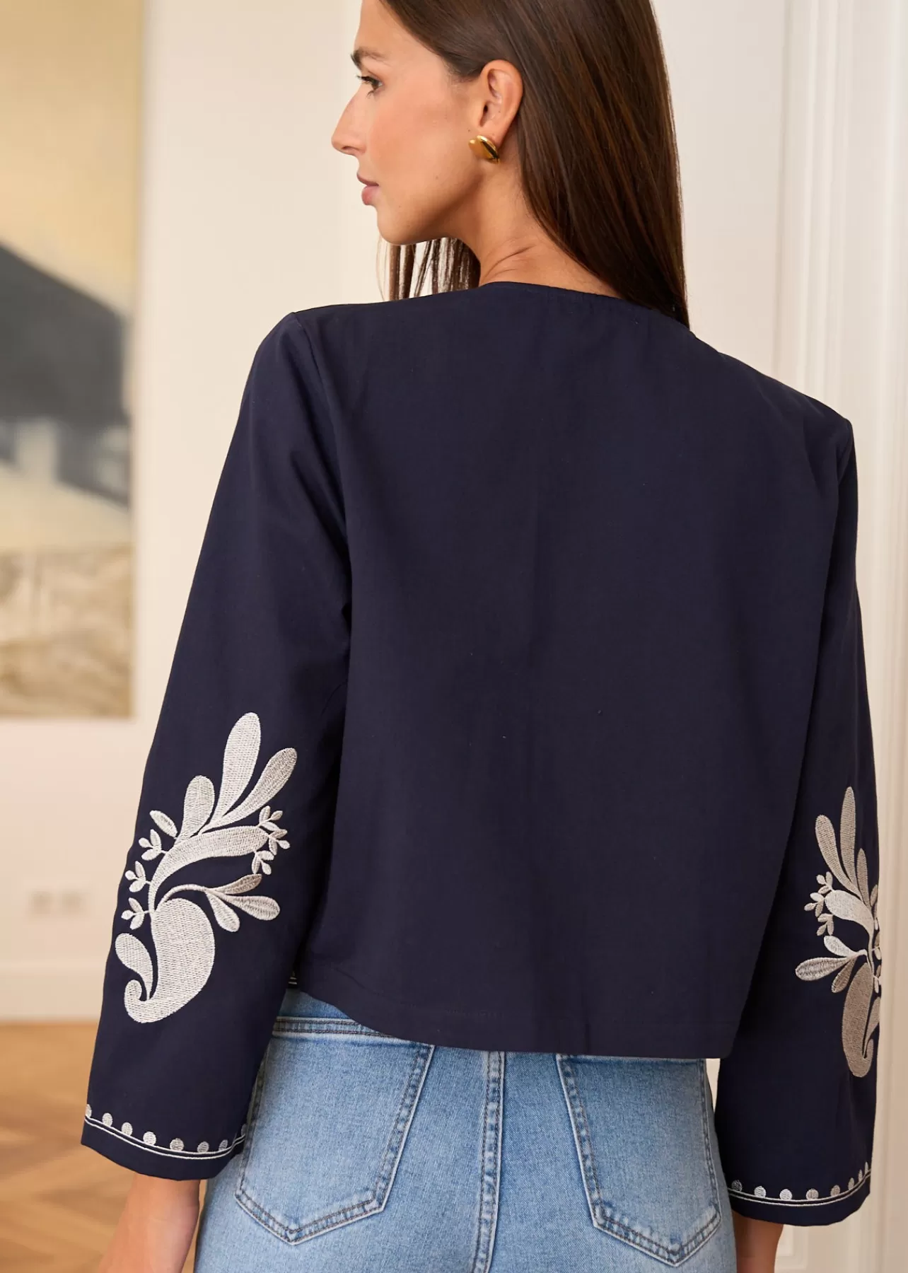 – Veste brodée en coton – Manches longues – Col rond – Longueur : 46 cm (S) – Largeur : 50 cm Youlia mesure 1m76 et po…